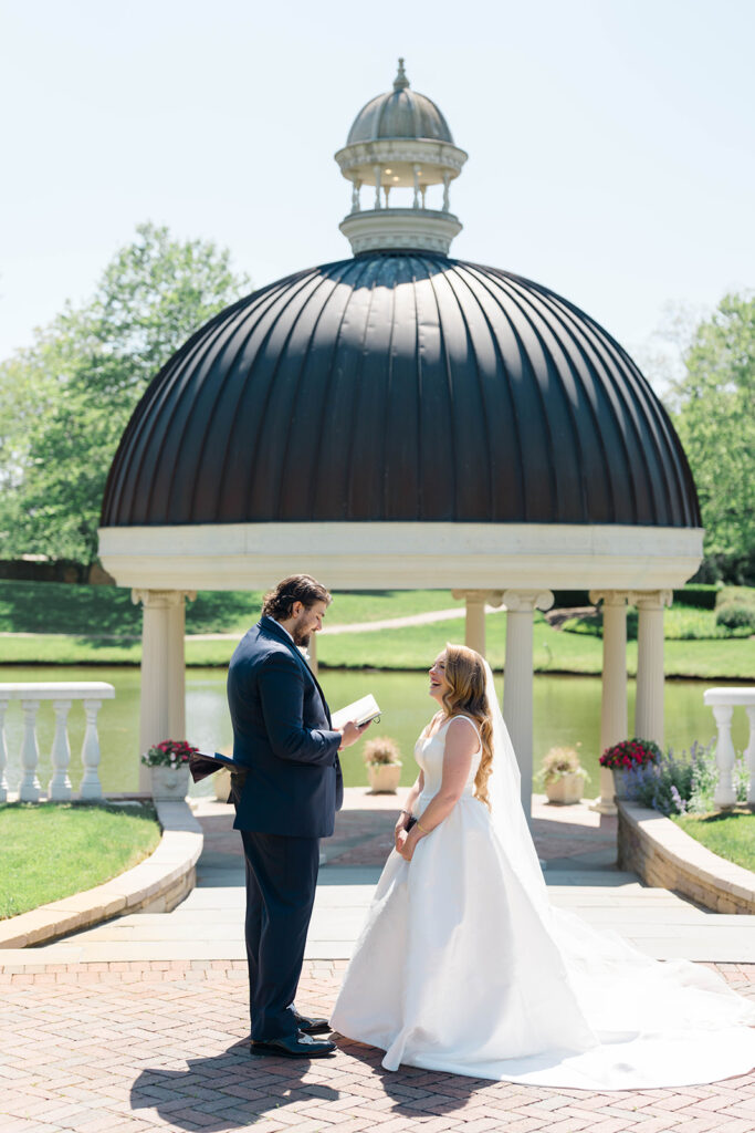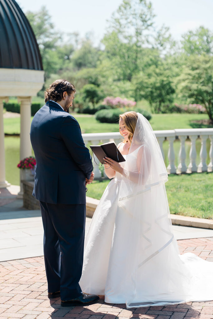 I will always be a fan of private vows. It gives couples some time to be with each other before the day gets crazy. It also gives privacy for couples who want to keep their vows just between the two of them. This offers a more comfortable setting with less eyes on you as you share intimate thoughts and reflect on your relationship together. Morgan and Billy had a secluded spot by the gazebo which offered a tranquil setting that calmed their nerves and let them have a special moment together.