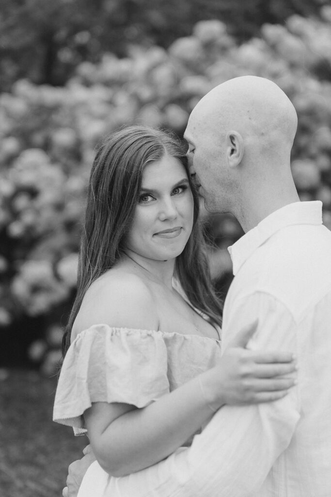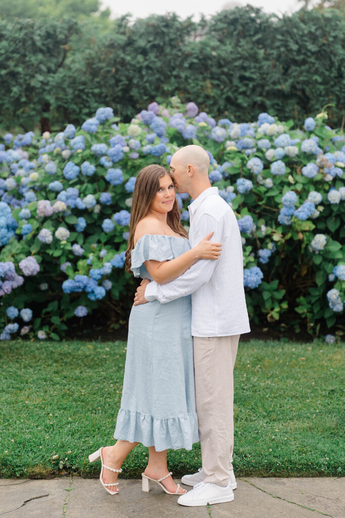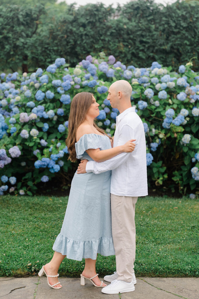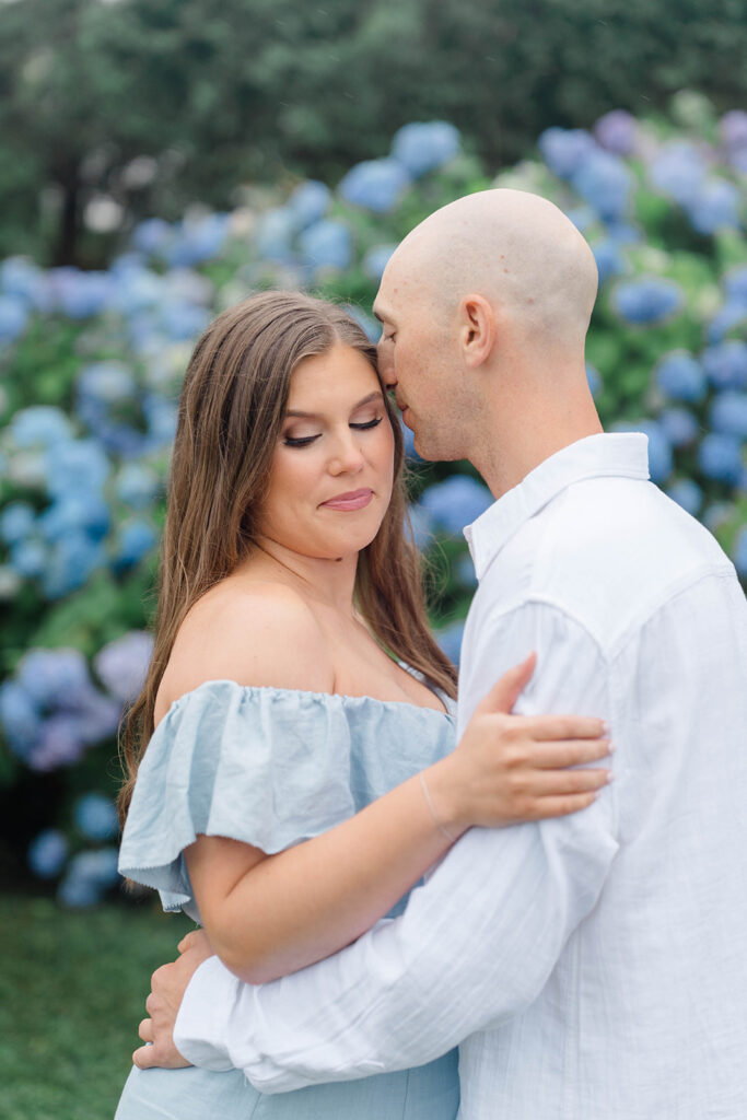 During Erica and Jake’s session there were these beautiful hydrangeas that we had to utilize in the photos. I love adding any flowery background in photos but especially hydrangeas. They are dreamy, romantic and offer the perfect amount of whimsy. Hydrangeas are often associated with feelings of love, grace and beauty making them the perfect flower for a couple to incorporate to create a magical gallery.