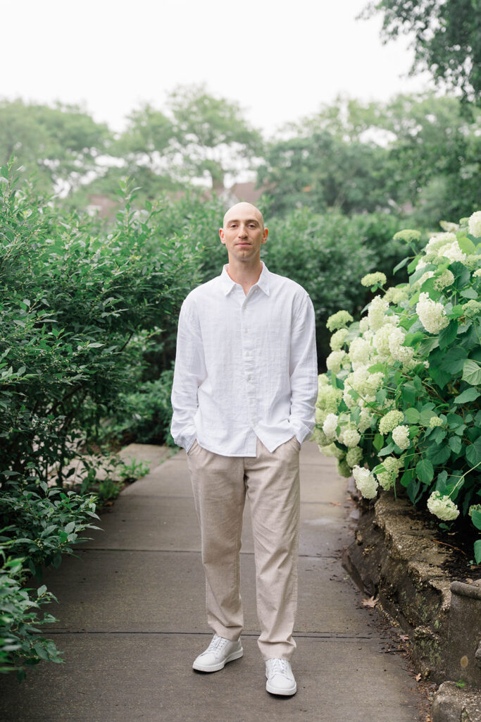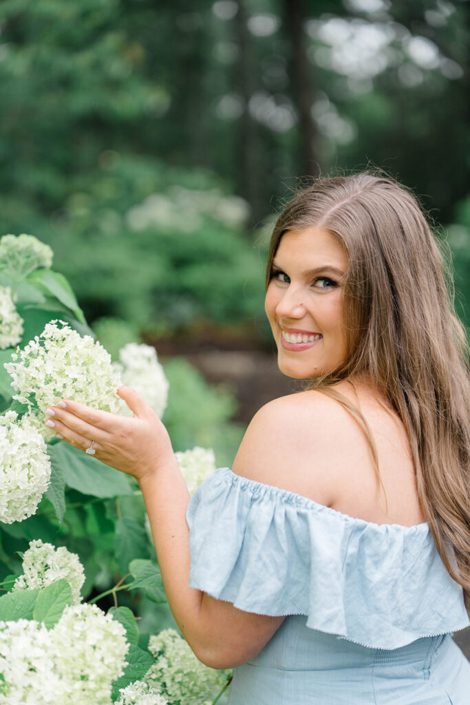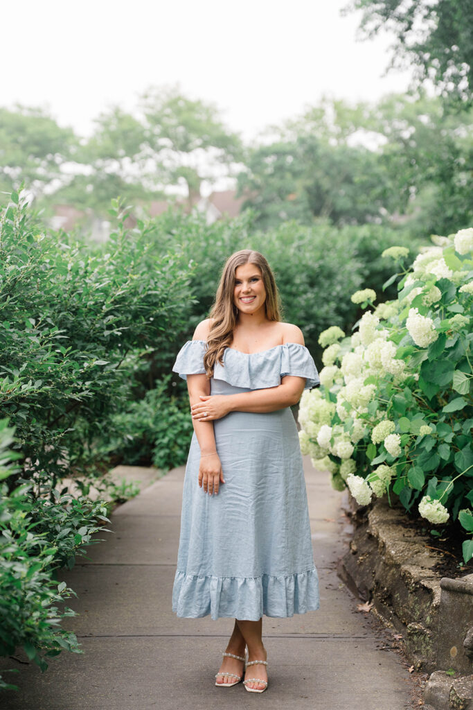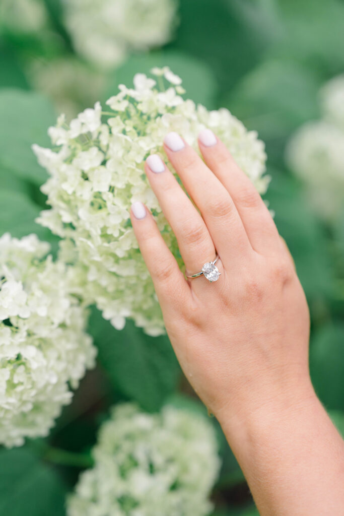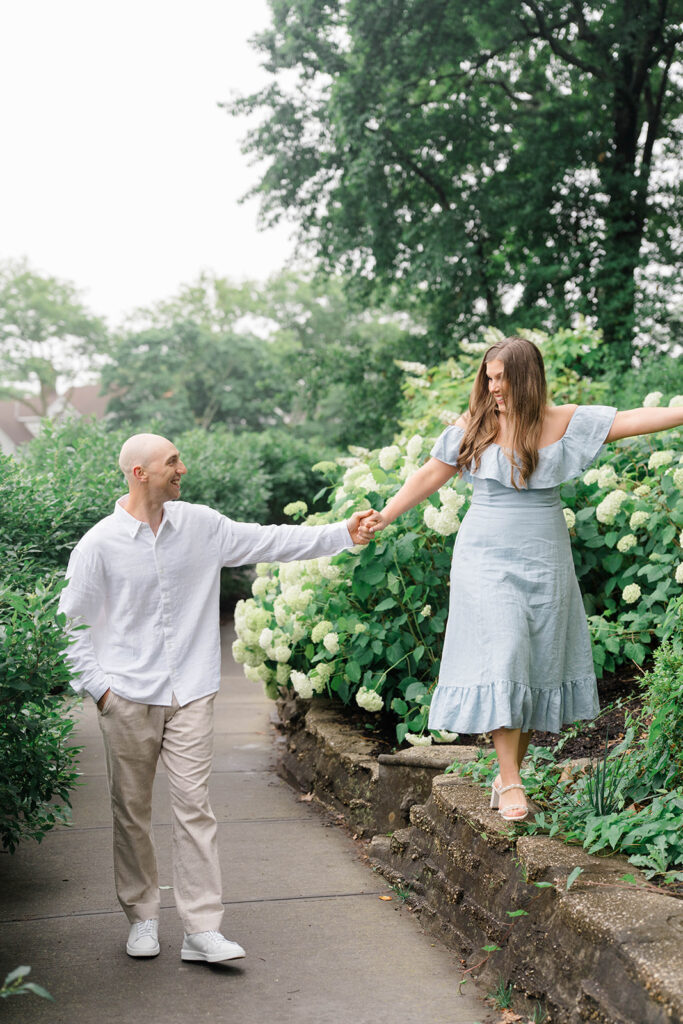 During Erica and Jake’s session there were these beautiful hydrangeas that we had to utilize in the photos. I love adding any flowery background in photos but especially hydrangeas. They are dreamy, romantic and offer the perfect amount of whimsy. Hydrangeas are often associated with feelings of love, grace and beauty making them the perfect flower for a couple to incorporate to create a magical gallery.