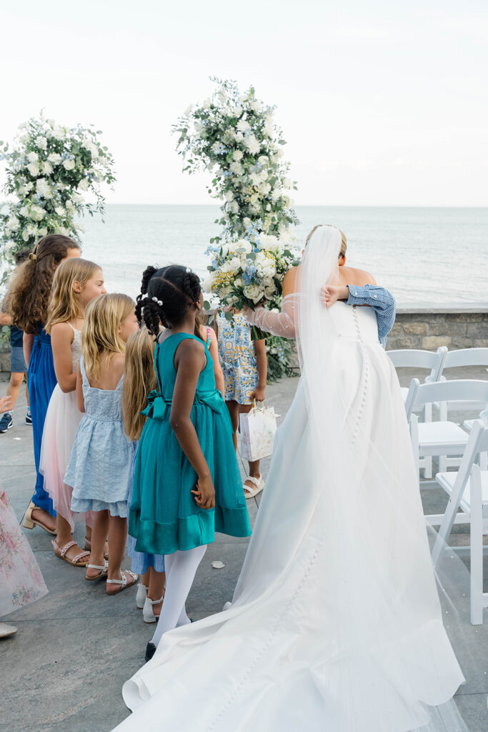 Heather and Justin’s ceremony was so full of love and laughter, but what made it even more special was the bride’s class. It says something about Heather that the students she teaches wanted to come and watch her tie the knot. There is something so special about kids at a wedding ceremony. Kids bring a magical, infectious energy that lights up the space. They add a layer of joy that adults just can’t match. Having kids at a ceremony is a perfect representation of family, friends and love that surrounds the couple. (kids faces not shown, but know the photos are absolutely heart melting)