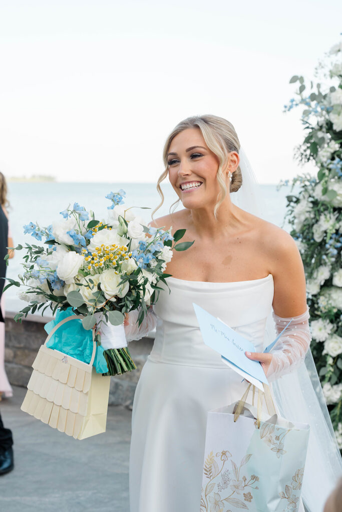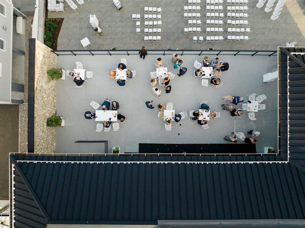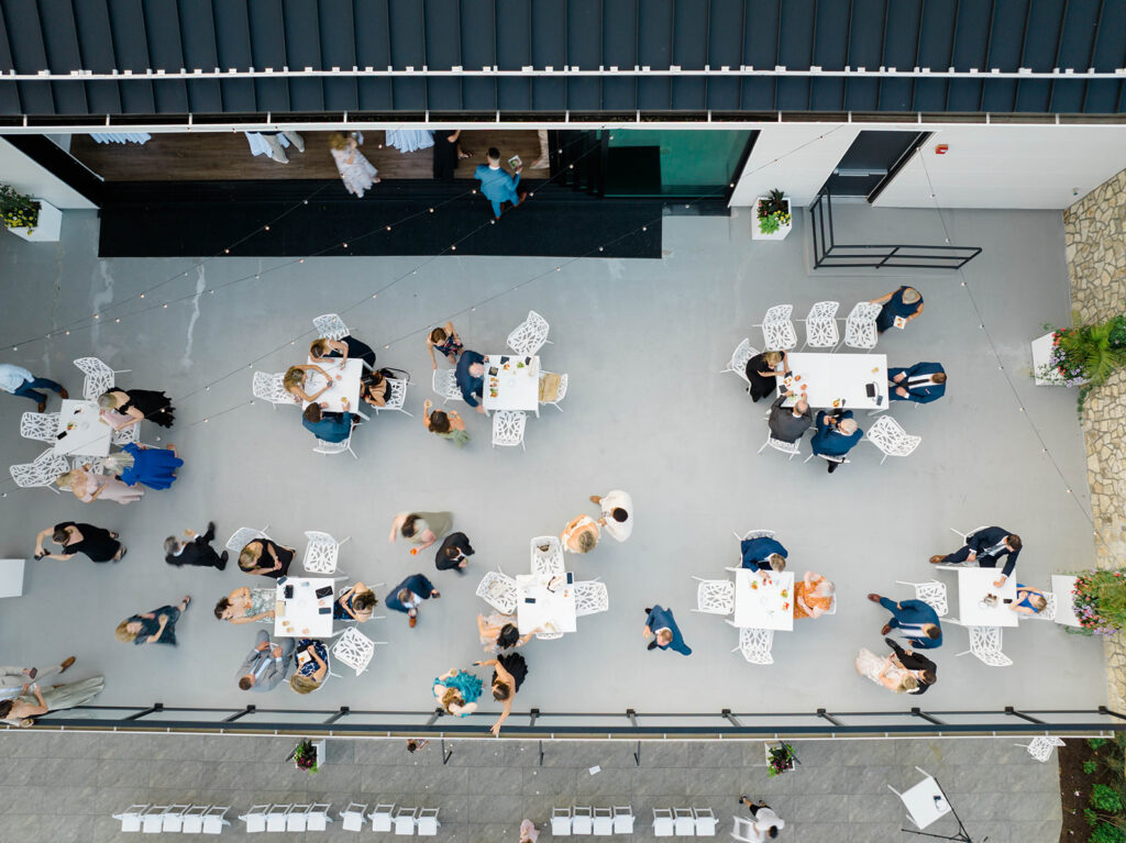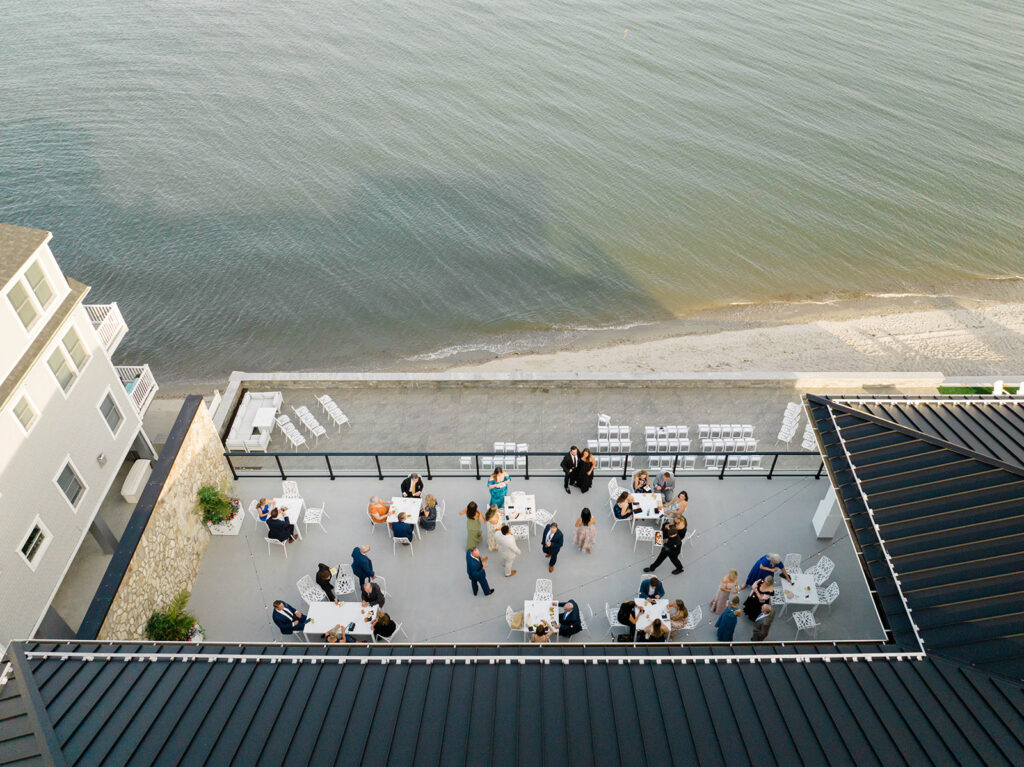 This space is absolutely dreamy. Overlooking the water it was also the perfect place to get a ton of drone shots. I love when the opportunity arises to take stunning photos like this. Guests mingling in a gorgeous outdoor location gives a different perspective of the entire scene. Drone shots not only create a cool visual, they are also a keepsake that tell a story of your best day.
