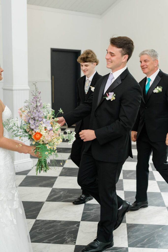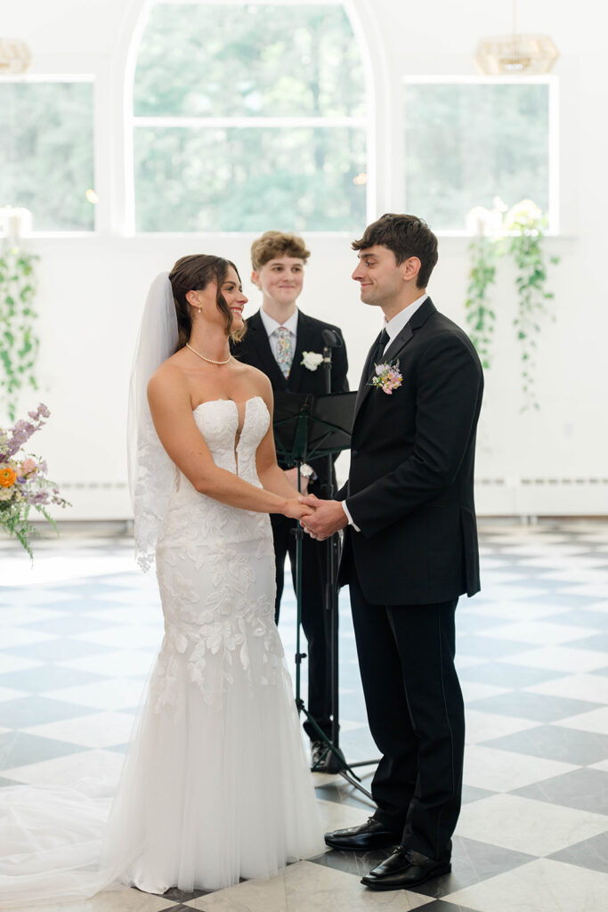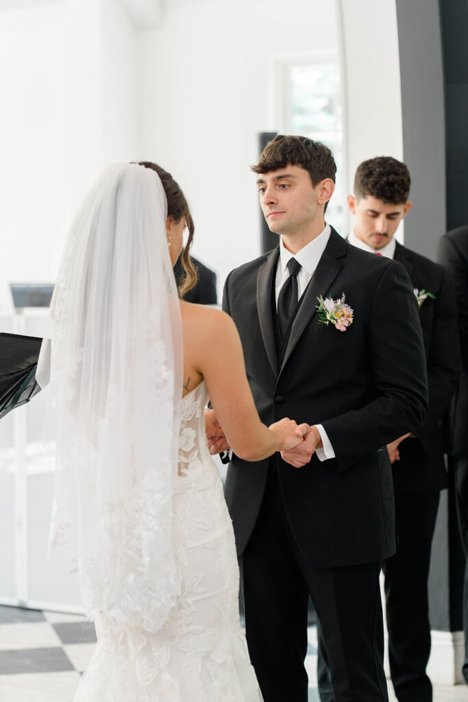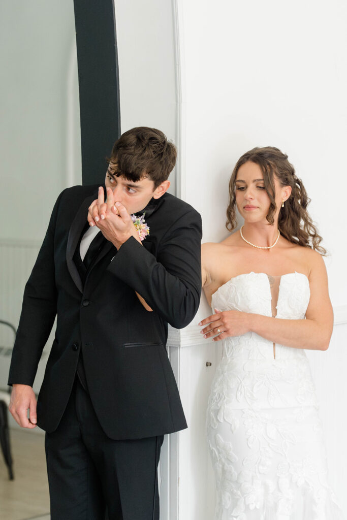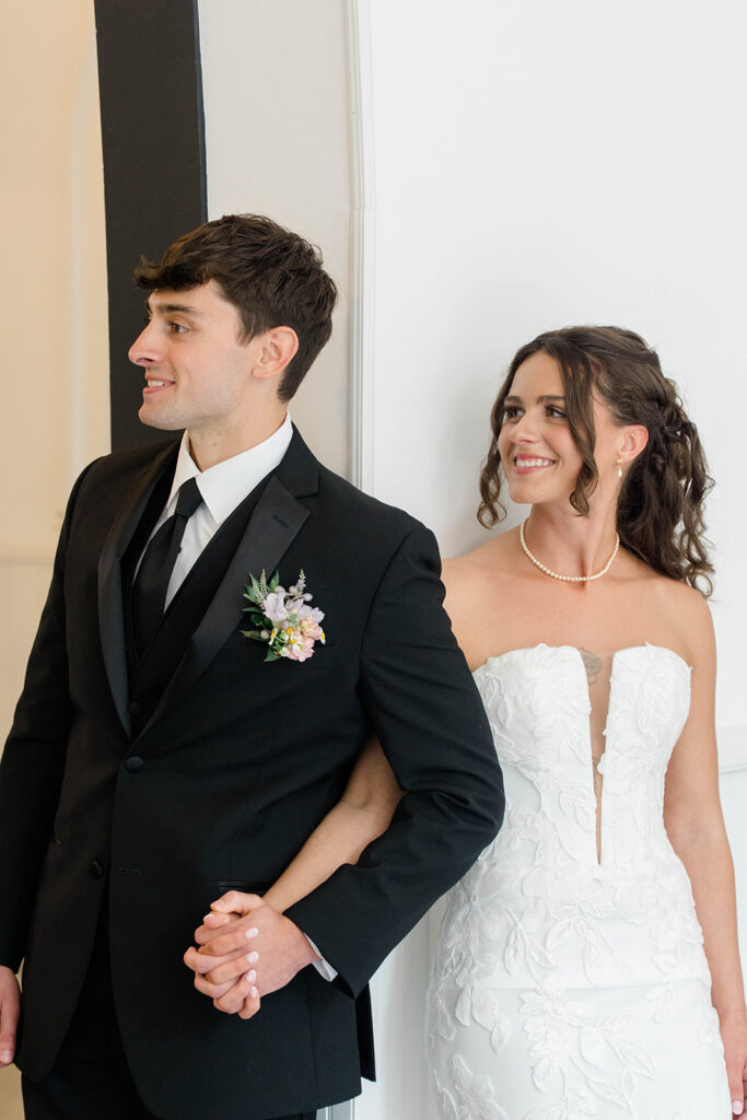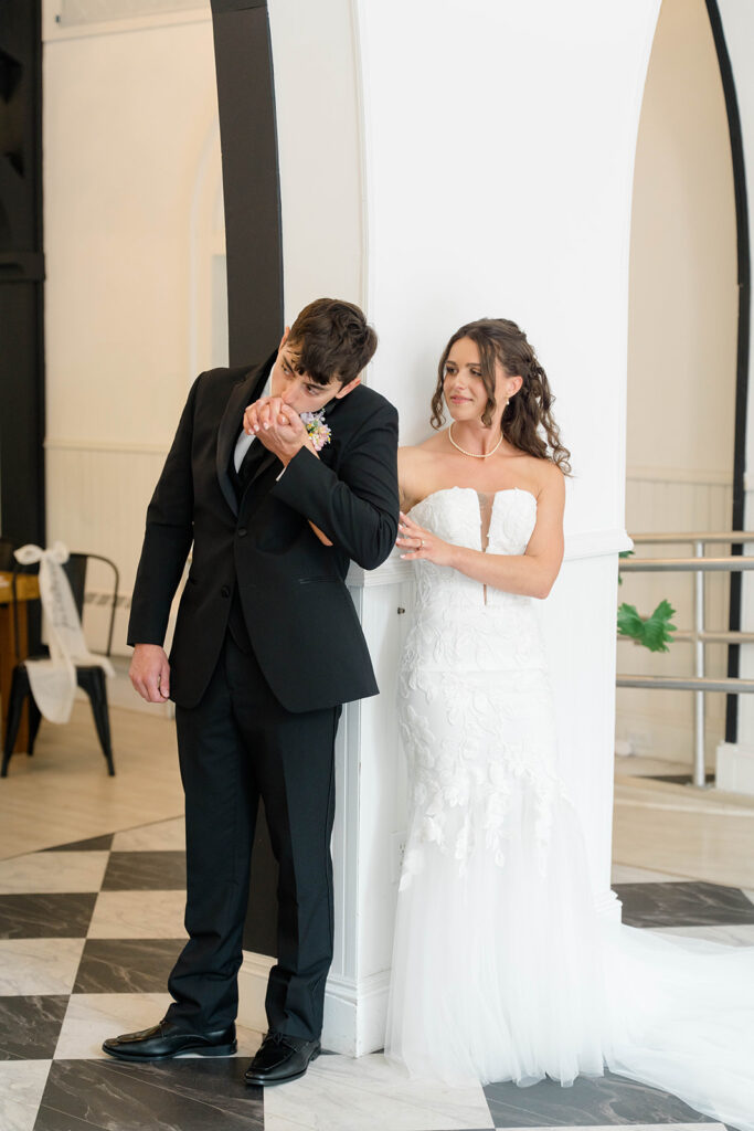 For a couple who doesn’t choose to do a first look but also wants a moment together before the ceremony a first touch is the way to go. Casey and Ethan chose to take a moment after getting ready to connect without seeing each other. They held hands around a corner and it helped calm those pre-ceremony jitters. So if you are skipping the first look but you’re still looking for that pre-ceremony connection, don’t overlook a first touch. It’s the perfect way to share a moment and set the tone for the rest of the day.