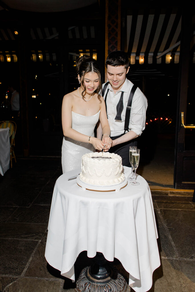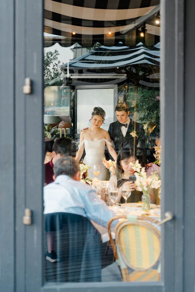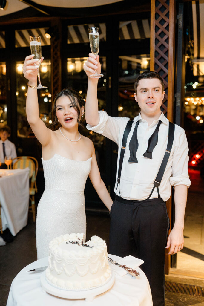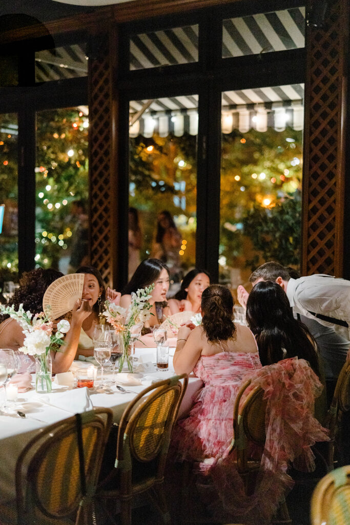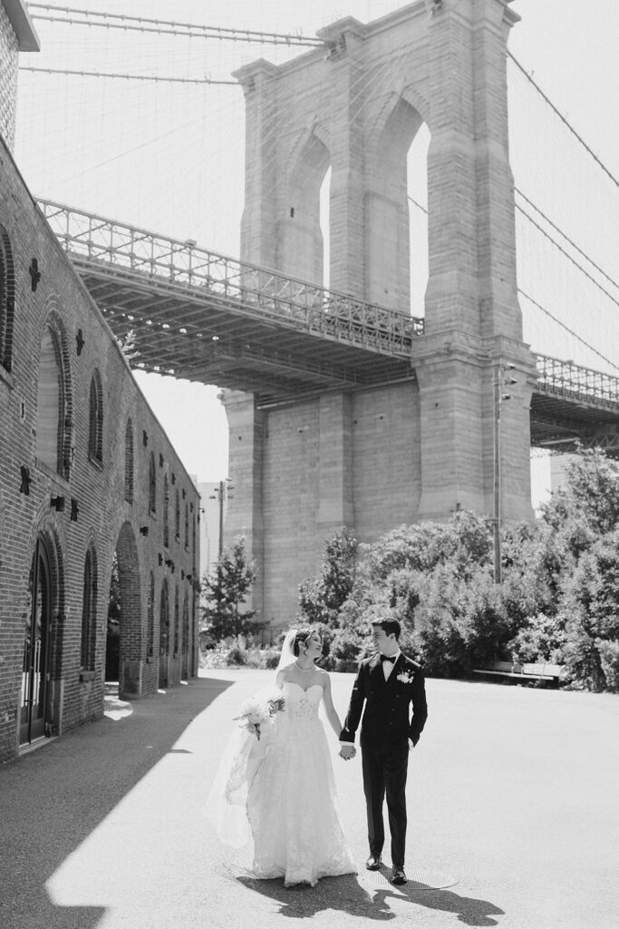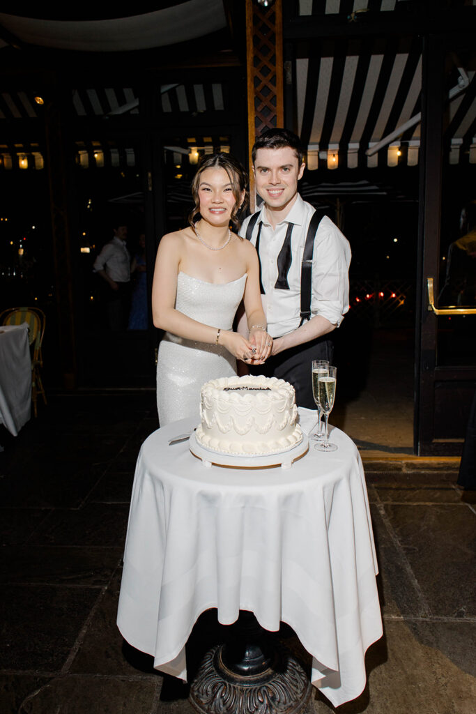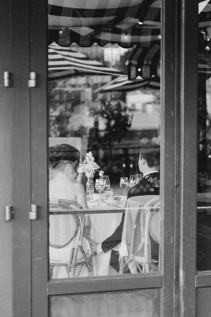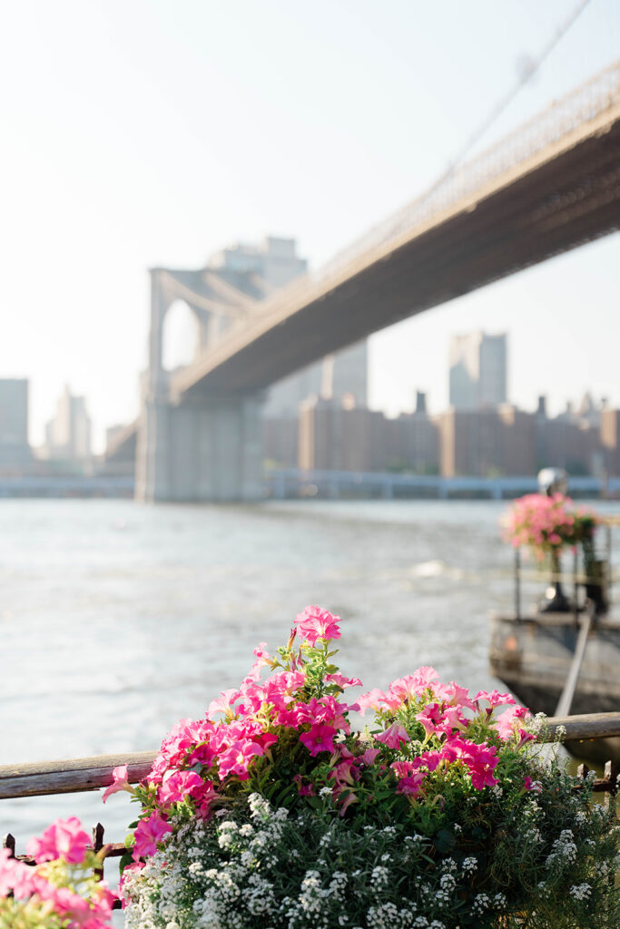 From the moment I saw The River Cafe I knew I was going to be obsessed. Tucked right along the water under the Brooklyn Bridge, it’s one of those venues that instantly feels magical. Cocktail hour on the deck was such a dream with guests sipping drinks while overlooking the skyline and the river below. Inside, the reception space is wrapped in glass, so everywhere you turn there’s a new stunning view of the city. I loved getting to capture the reflections of the skyscrapers in the windows as well as Crystal and Cooper happily chatting with their guests. It was so artistic and different from a typical wedding day.