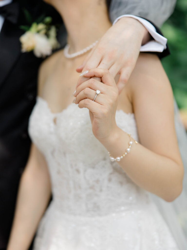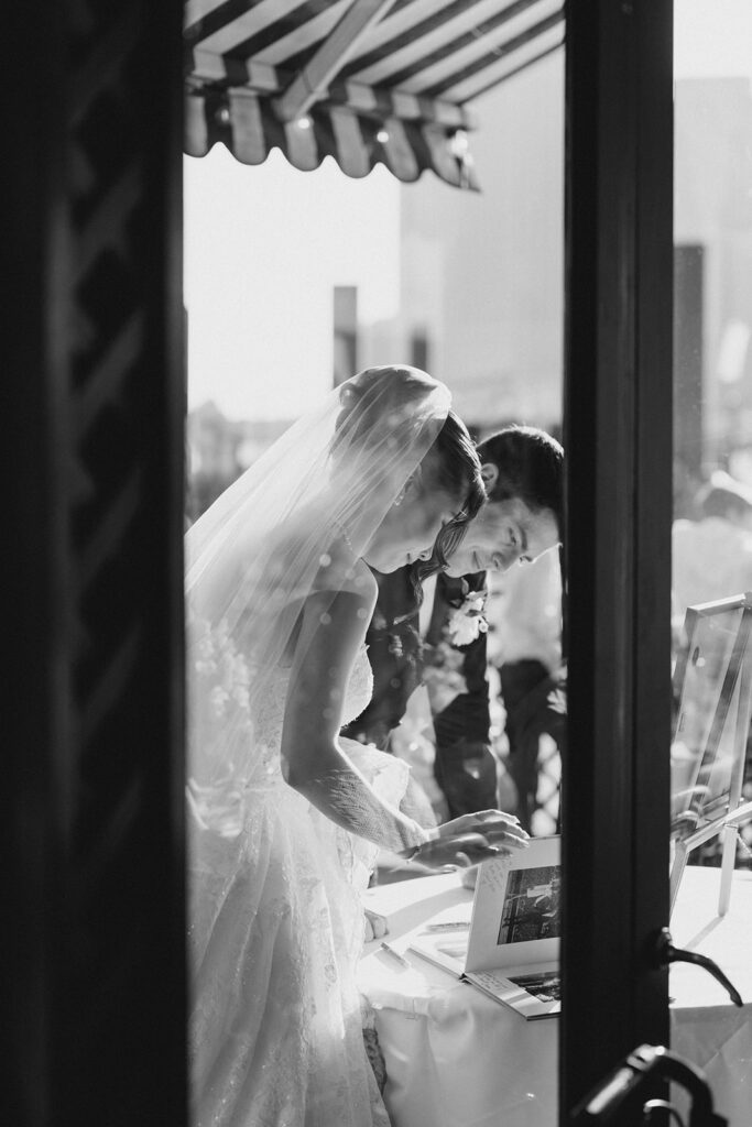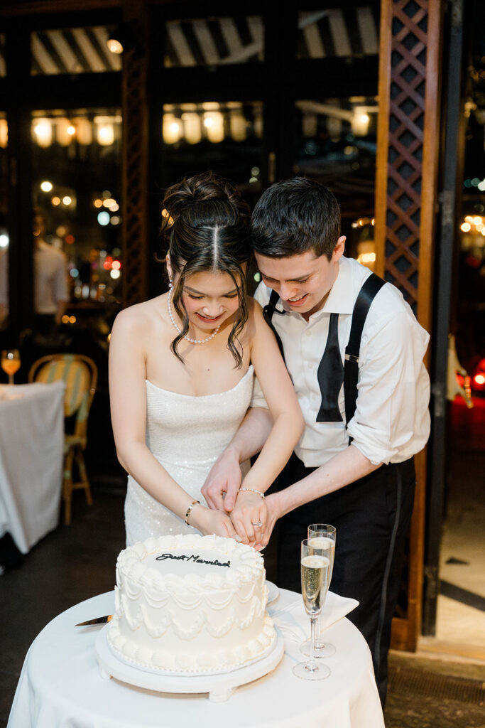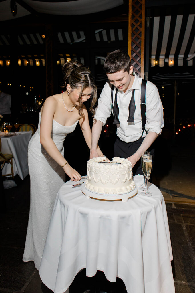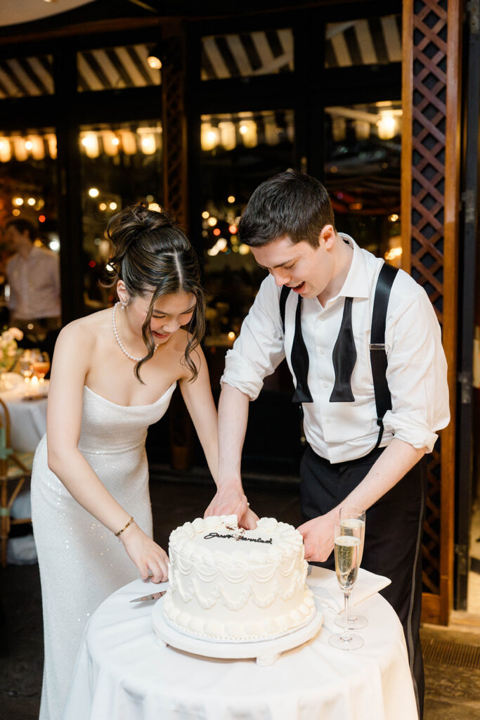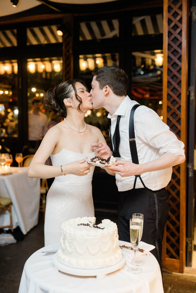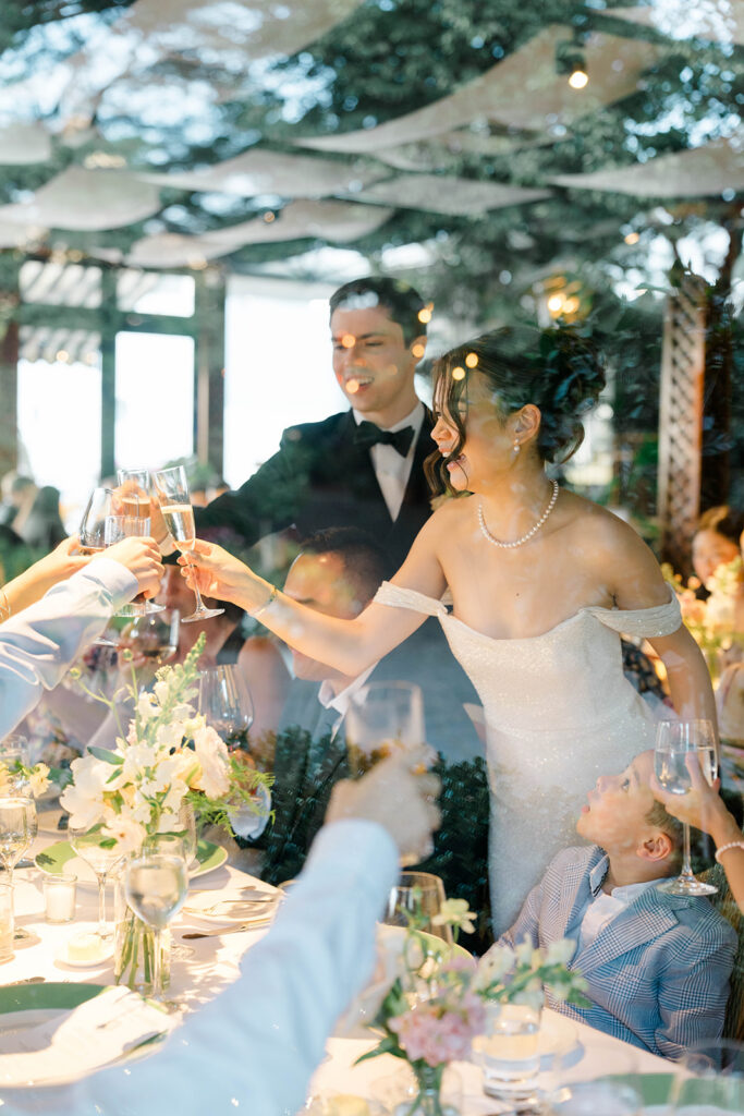From the moment I saw The River Cafe I knew I was going to be obsessed. Tucked right along the water under the Brooklyn Bridge, it’s one of those venues that instantly feels magical. Cocktail hour on the deck was such a dream with guests sipping drinks while overlooking the skyline and the river below. Inside, the reception space is wrapped in glass, so everywhere you turn there’s a new stunning view of the city. I loved getting to capture the reflections of the skyscrapers in the windows as well as Crystal and Cooper happily chatting with their guests. It was so artistic and different from a typical wedding day.