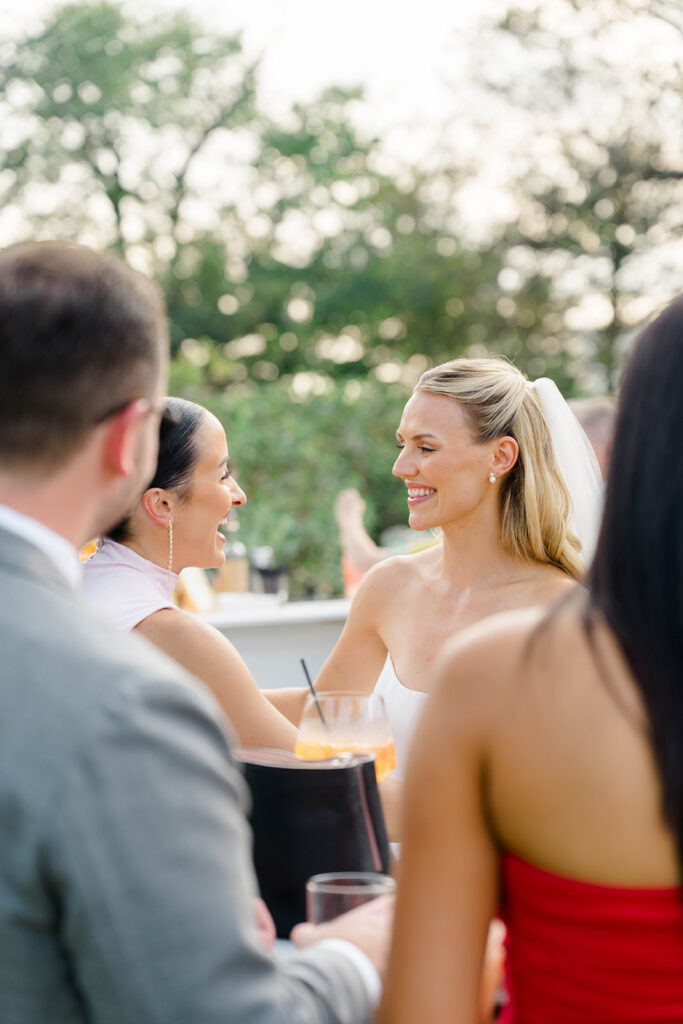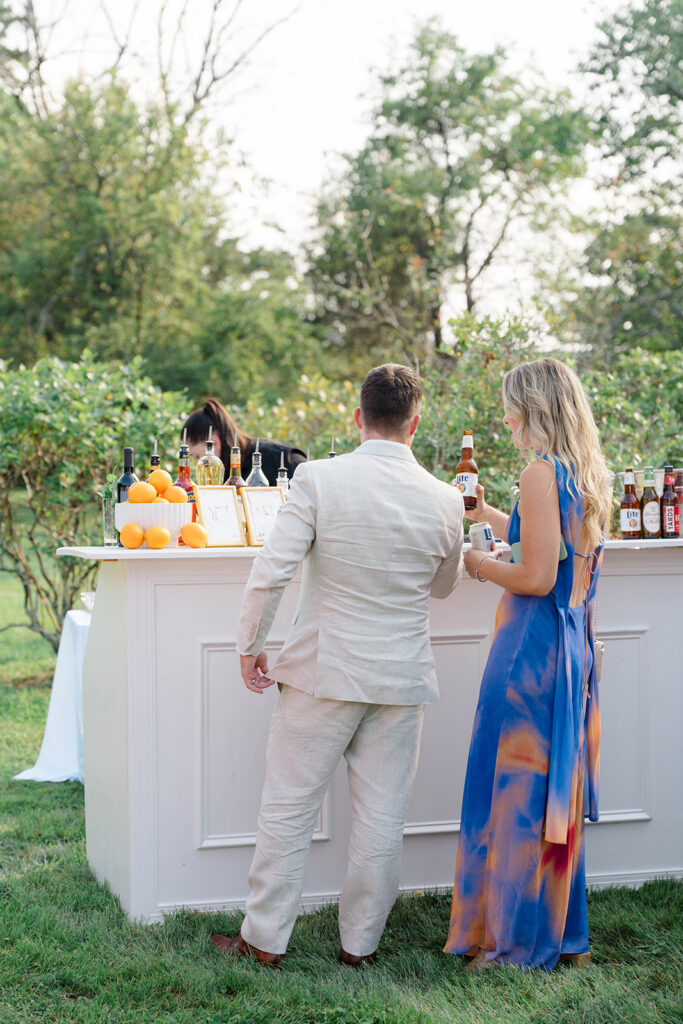 I love an outdoor cocktail hour, Anna and Eric’s was like a dream. Great weather, laughter, and those gorgeous signature drinks that really set the tone for the evening. I loved how the bar was styled it was not only functional but totally fit the aesthetic. Cocktail hour is a great time to get candids of not only the couple but their guests. And let me tell you the shots during this cocktail hour were just adorable. From laughter to sweet interactions, it was clear that everyone was having a great time. Anna and Eric created such a relaxed atmosphere that made it easy for everyone to let loose and enjoy the moment.