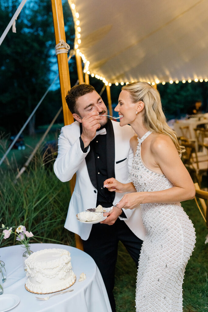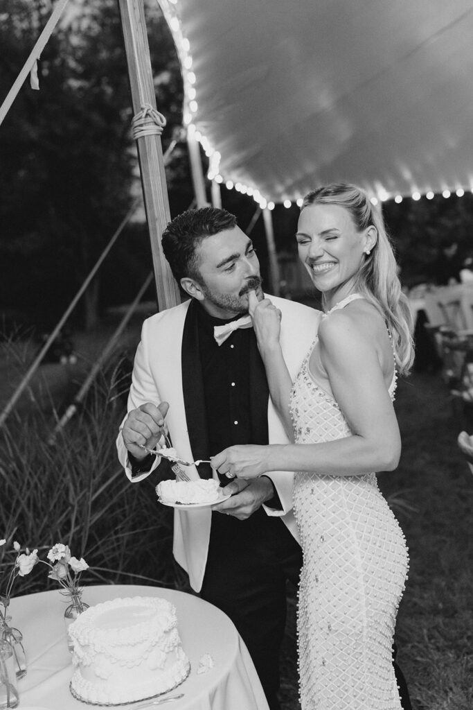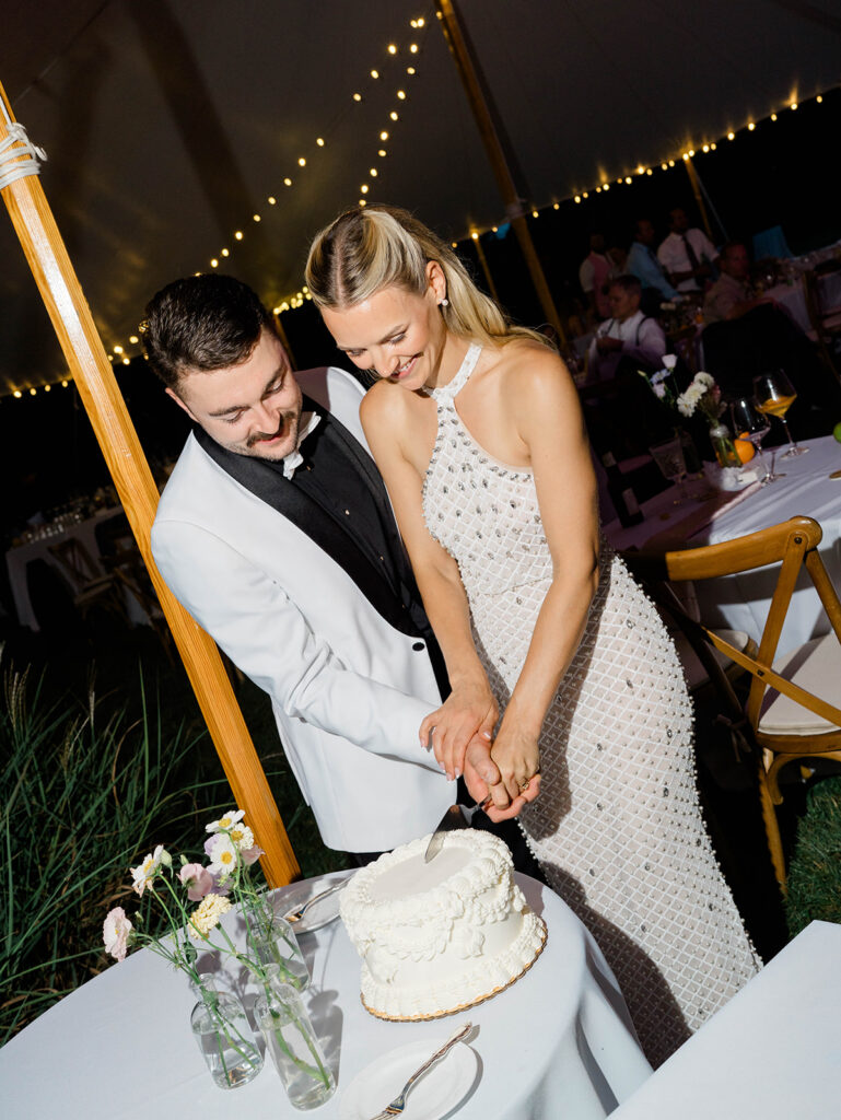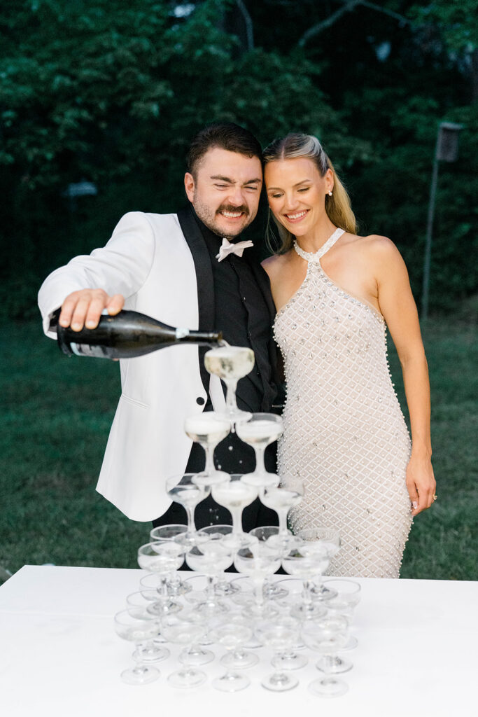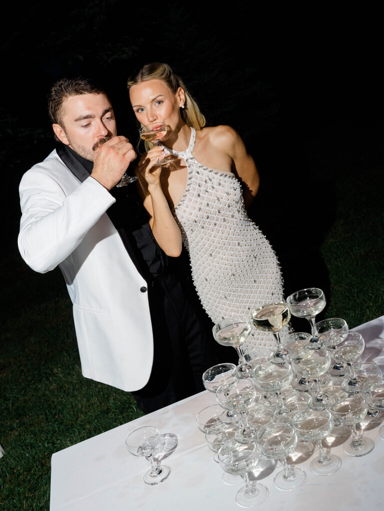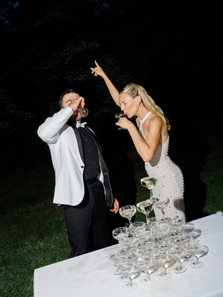 Direct flash during cake cutting and a champagne tower creates the perfect fun and vibrant photos. Using direct flash in these instances can highlight the joy and details in the moment. This technique helps create vibrant, memorable images that truly enhance the excitement.
