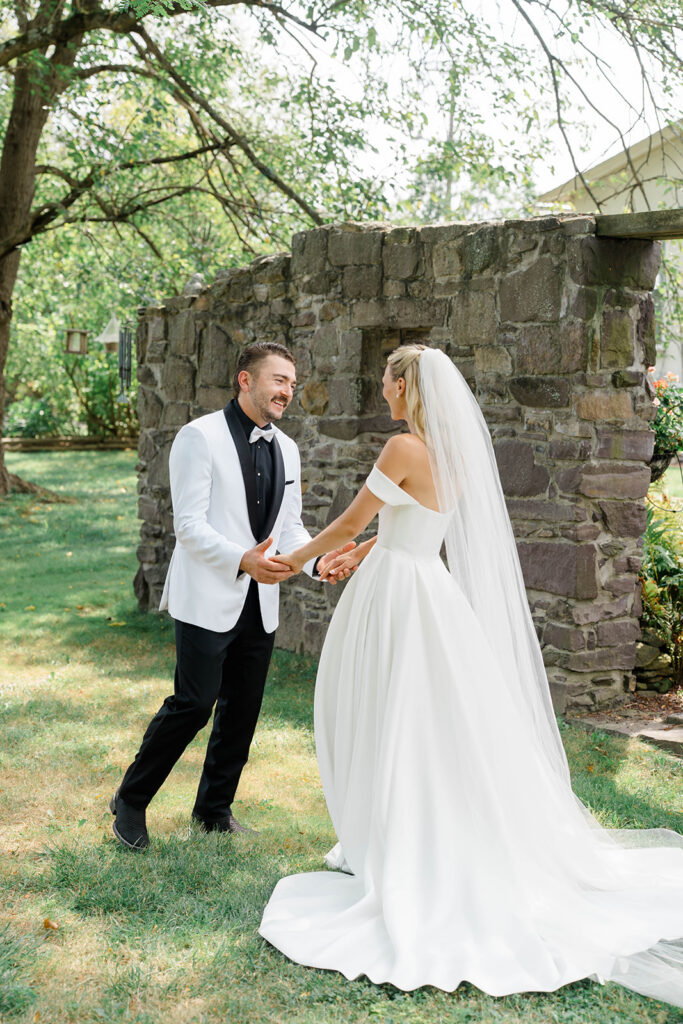 Anna and Eric were high school sweethearts and their connection showed from the moment I met them. It’s no surprise they were so easy to capture, their adoration for one another seeps into every photo I took. It made first look and portraits so fun. The sun was definitely not a paid actor even if it looks like it the way it was giving off the most amazing glow. I had the best time finding dreamy places around the property for these pictures.