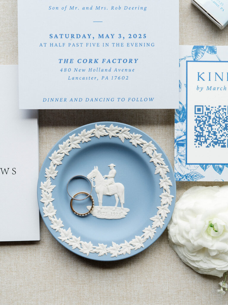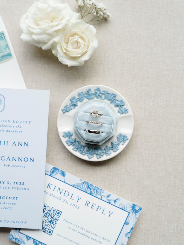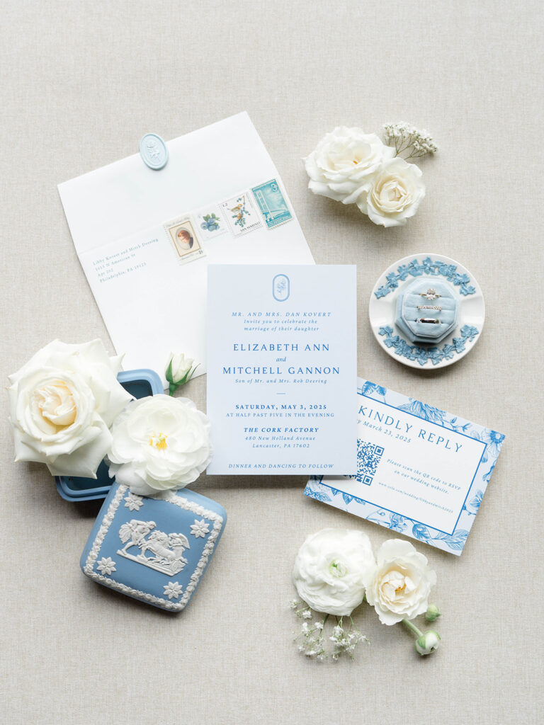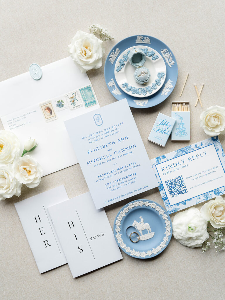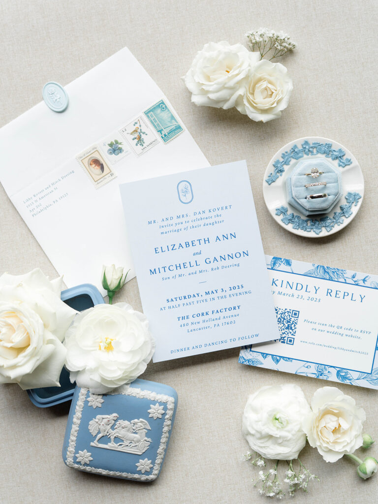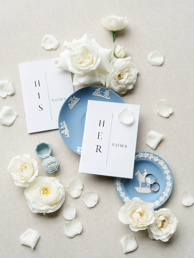 Anyone who knows me knows I have a deep obsession with all things wedgewood. I had the best time capturing Libby and Mitch’s flatlays because it was a dream come true for me. Their simple yet stunning invites were the perfect colors to pair with the delicate blues and whites of the wedgewood.