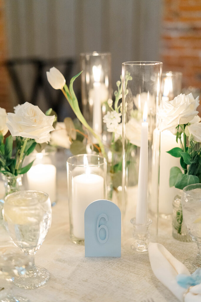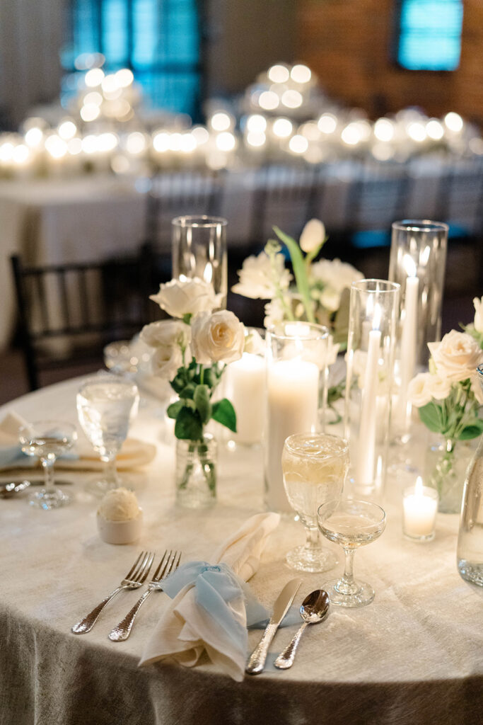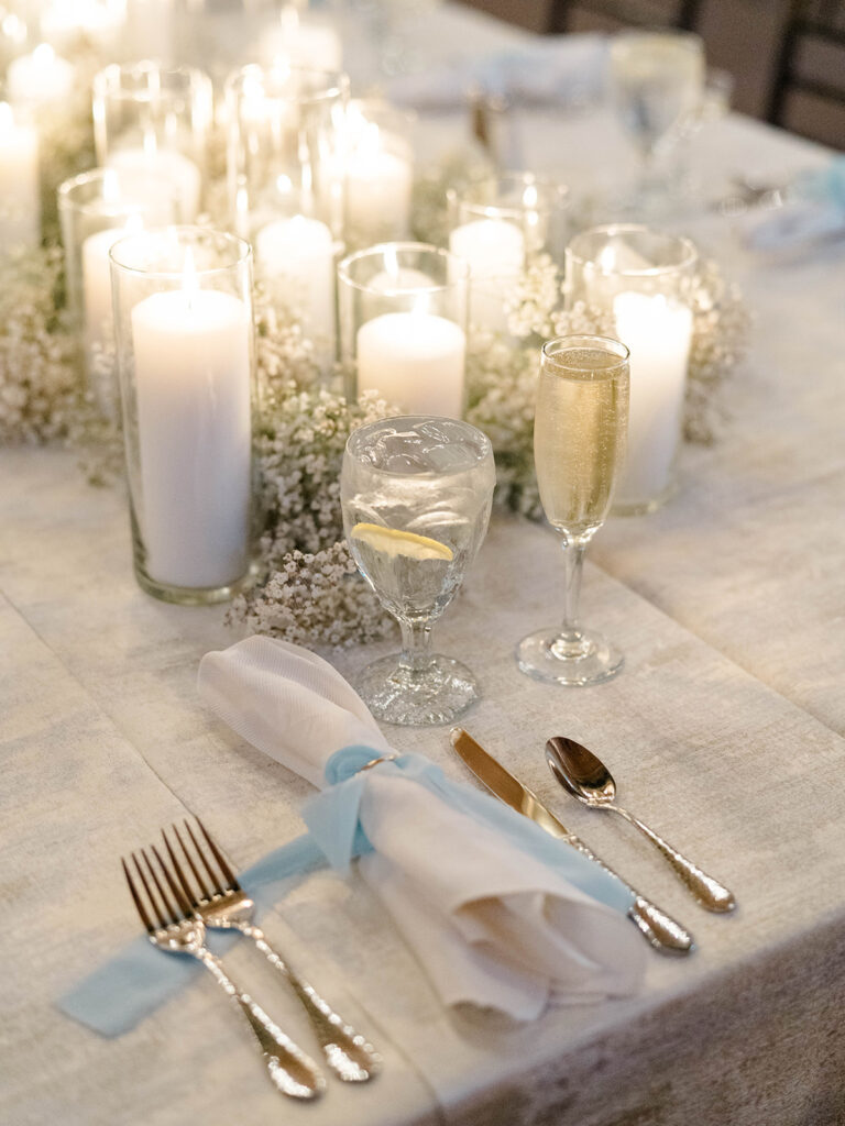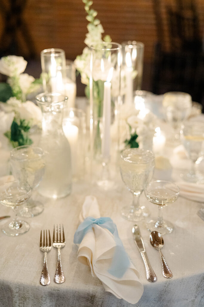 There is nothing quite as dreamy as the glow of a candle which makes Libby and Mitch’s wedding the dreamiest affair of them all. The best way to describe the reception space is that it was pure magic drenched in a soft warm glow. Candles make any reception feel more intimate and romantic. Candles are also super versatile. You can play around with different heights and colors to match your theme. Candles offer a simple, cost effective way to elevate the ambiance of any reception.
