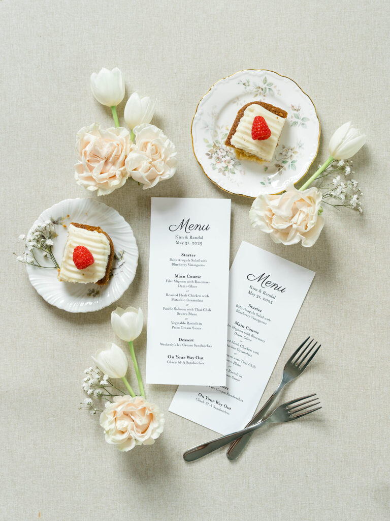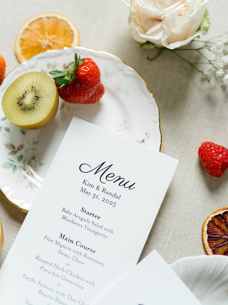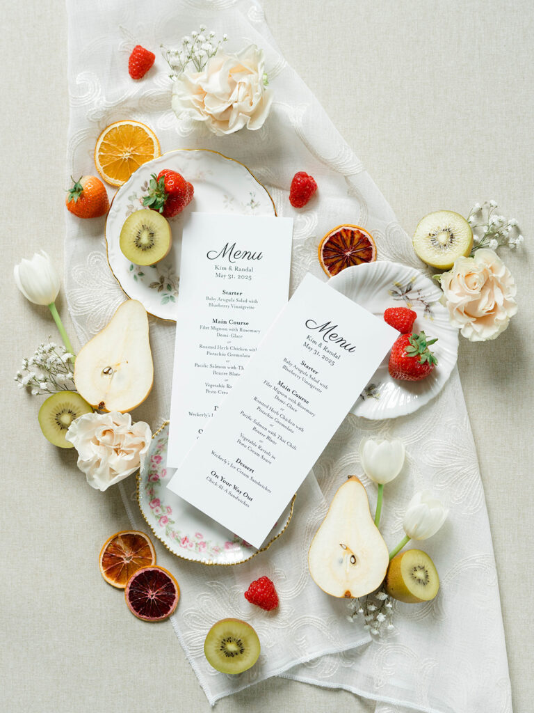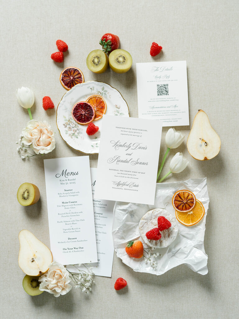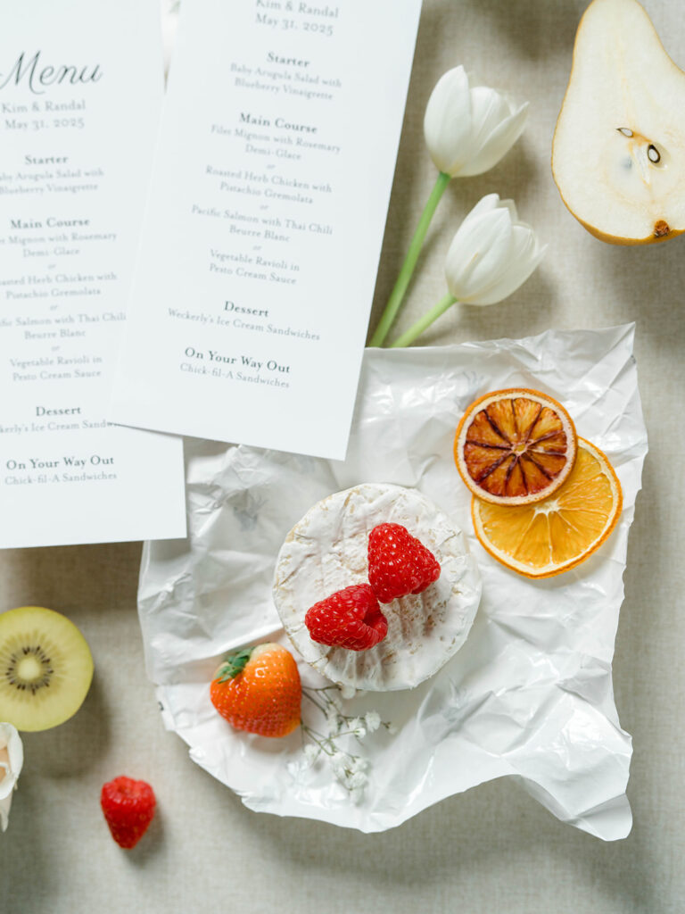 Kim and Randal had such a stunning flatlay. It was clean, crisp and fruity! I loved getting to play around with different elements for this one. Kim and Randal also made sure I had ample time to make it perfect by sending me everything in the mail so that I could create the perfect photos.