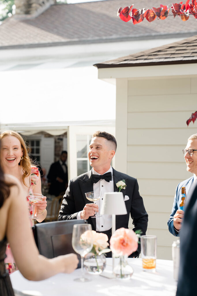 This is the first part of the day where a couple actually gets to talk with their guests. I was able to capture some adorable candids of Kim and Randal with their guests as they chatted about the day. This is also another perfect reason to have a first look. Most couples need to take couple portraits after the ceremony and it causes them to miss most of or all of cocktail hour. When you get to take your photos before it gives you more time for those candid moments everyone looks to have.