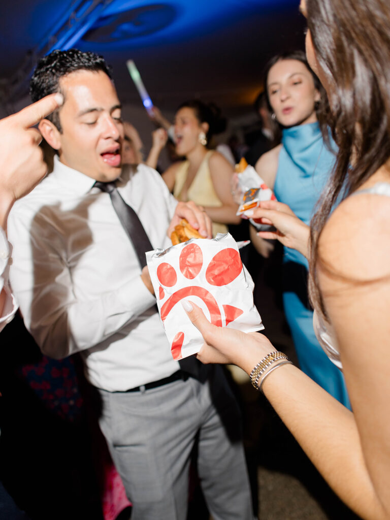 ICONIC! This is the only way I can describe the energy on the dance floor. Not only was everyone dancing and singing, they were all so happy and engaged. By the end of the night a lot of people are hungry again from dancing the night away. Kim and Randal were on top of that and made sure everyone left well fed by having Chick-Fil-A served on the dance floor. It was so fun watching everyone’s surprise when they were offered a sandwich.