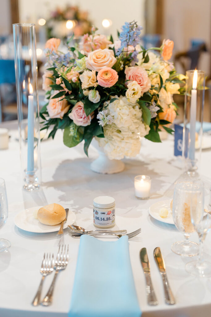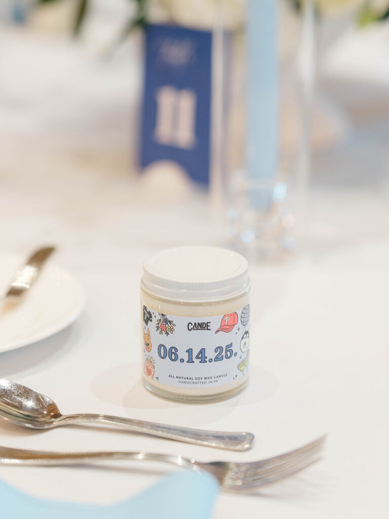I love how creative my couples can get when it comes to planning their weddings. Eryn and Chris wanted to make sure their guests had a special gift to take home for being such an important part of their day. They own their own candle shop and made the candles to give out as favors.