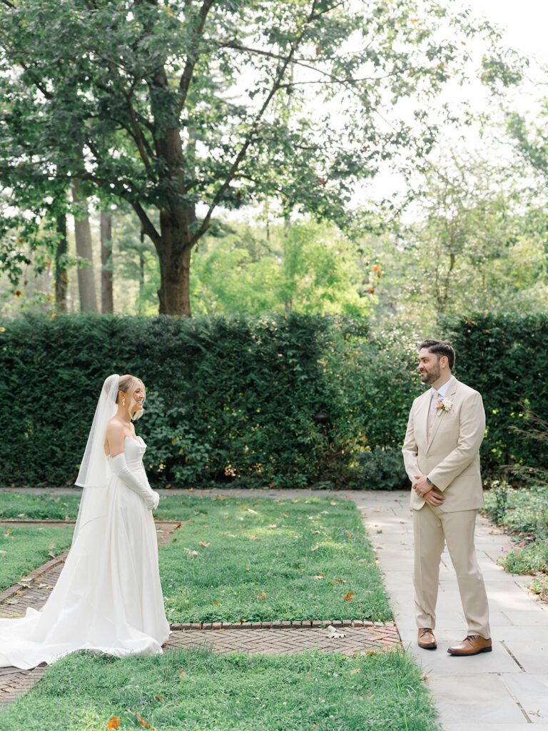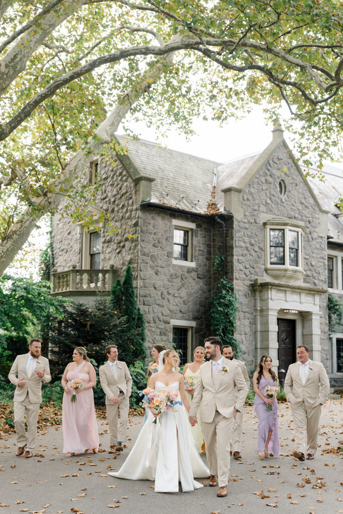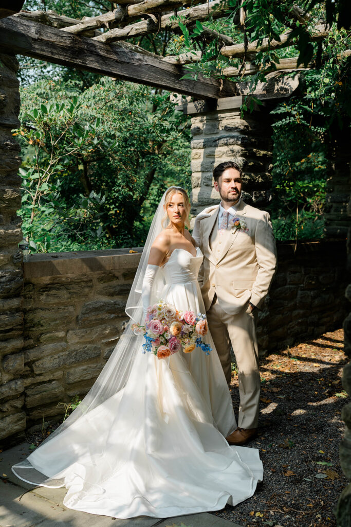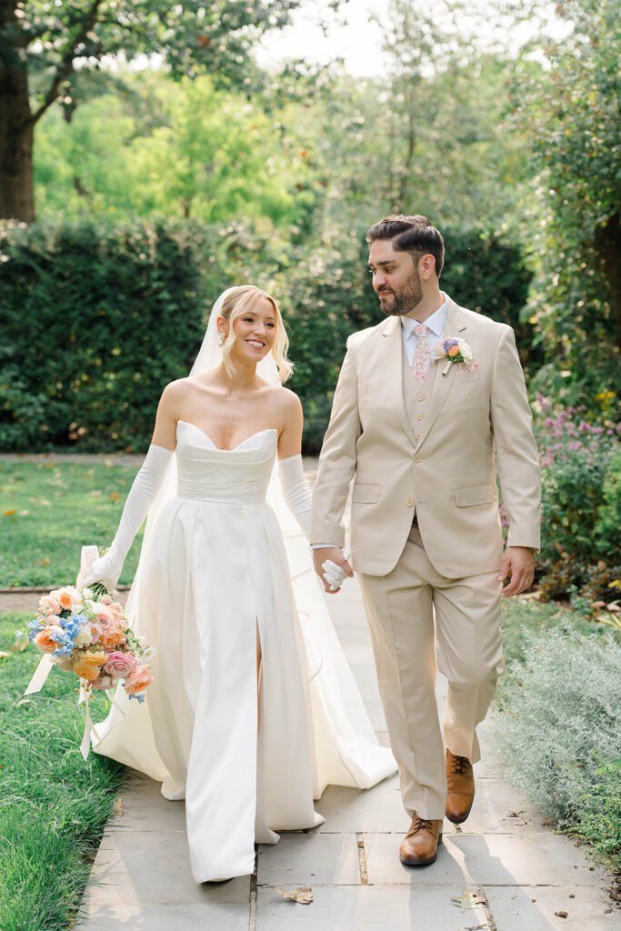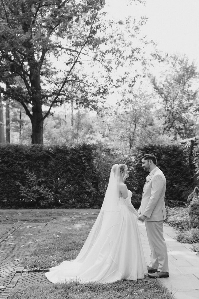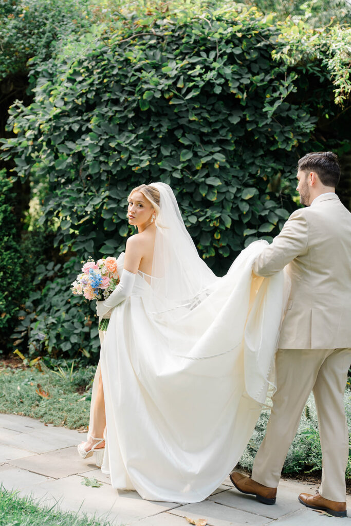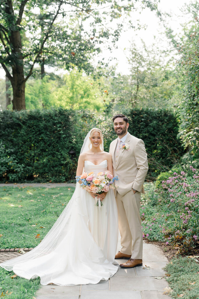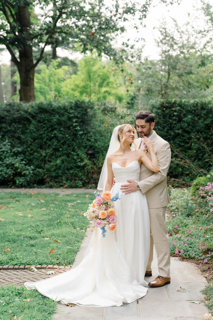 I love when couples choose to take portraits at a location that Isn’t usually used for a wedding day. Stoneleigh in Villanova is such a perfect location for photos. The stunning gardens and picture perfect landscape make it a dreamy location for photos. There are so many worthy spots to choose from, which makes it a versatile spot. The main house has a timeless elegance that perfectly enhances the beauty of the grounds surrounding it.