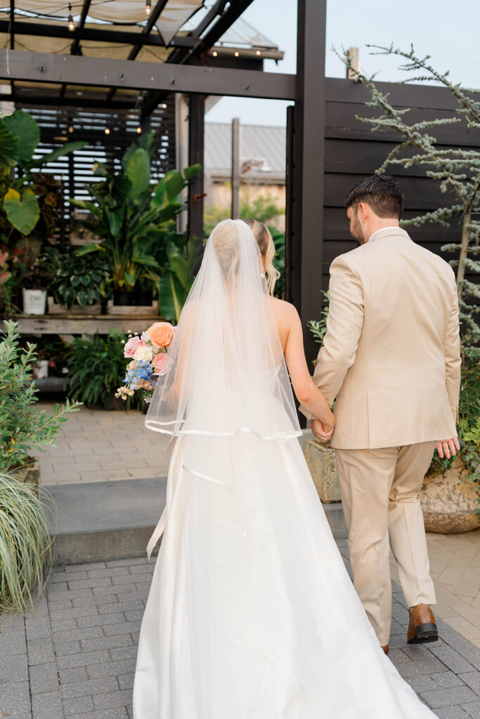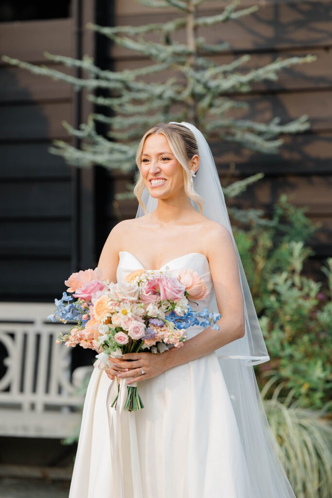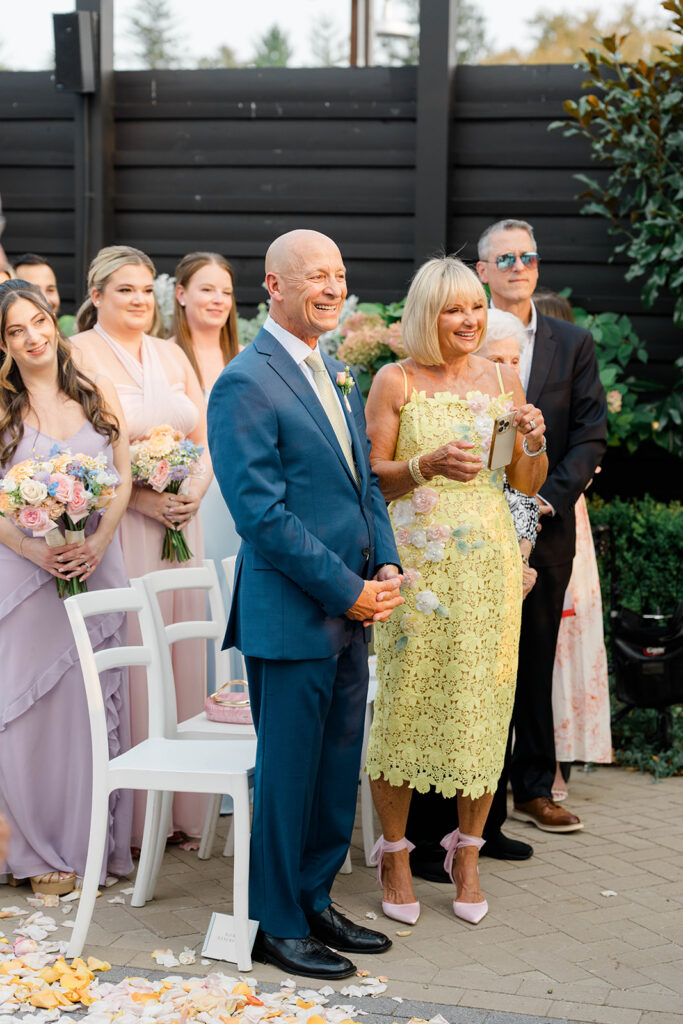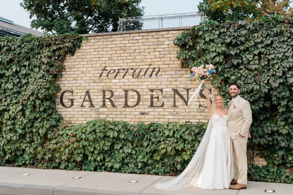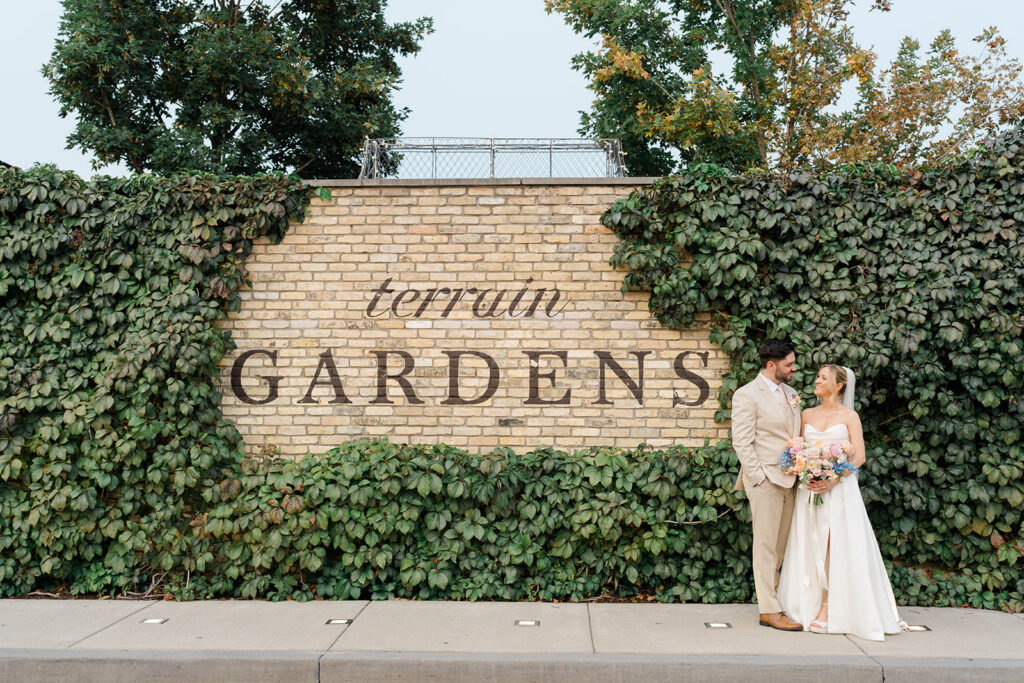 Terrain has three amazing locations for weddings, Gemma and Evan had their wedding at the Devon Yard location. This venue merges indoor and outdoor spaces to create a seamless spot for your whole day. Terrain uses rustic and modern features that pair perfectly together. The outdoor ceremony space is absolute magic. Lined with wisteria trees and offering a secluded and intimate location for ceremony, it feels like being in a fairytale. With so many picture perfect photo locations on the property you really can’t go wrong when you book with Terrain!