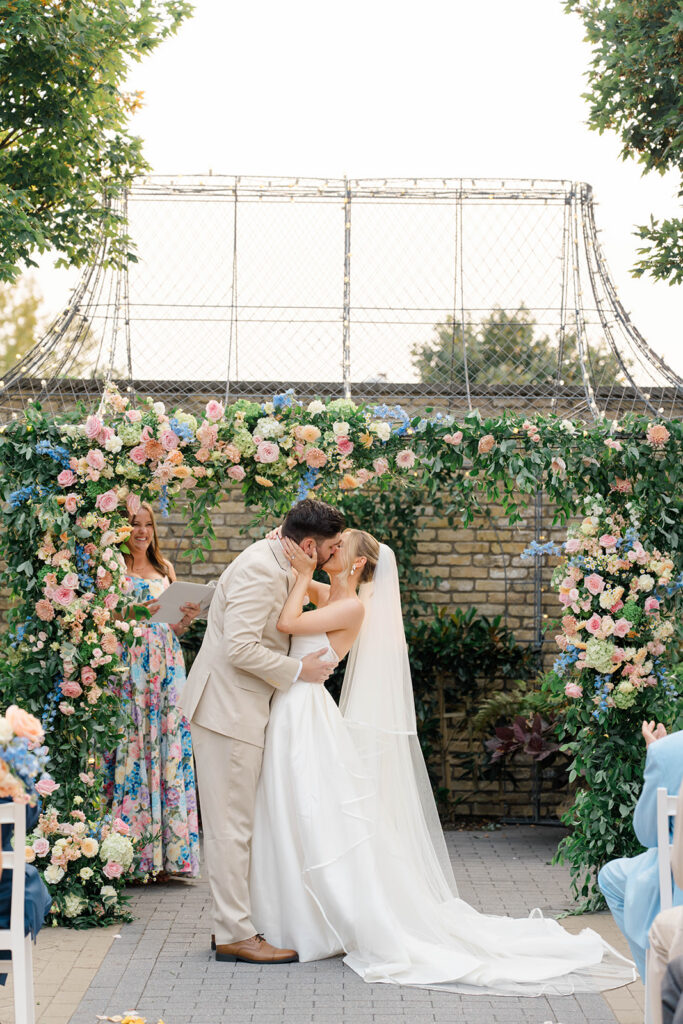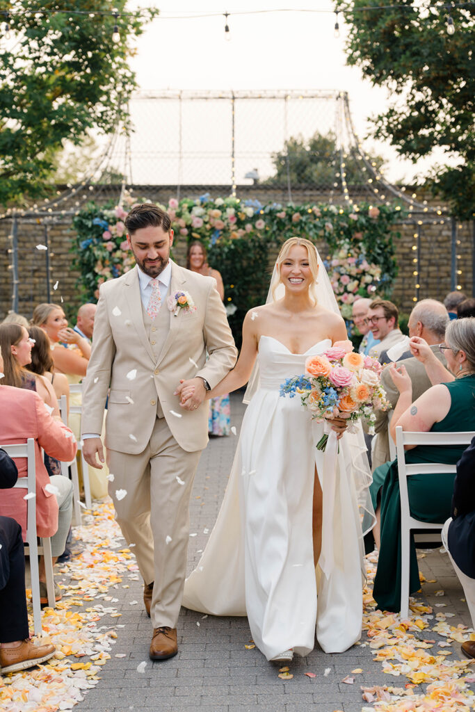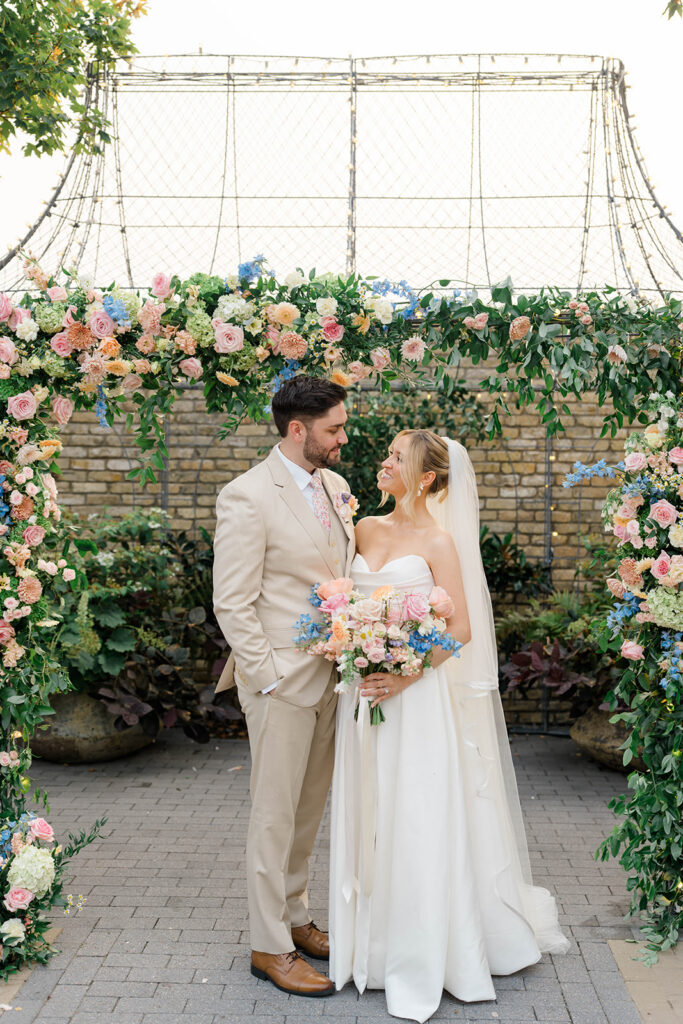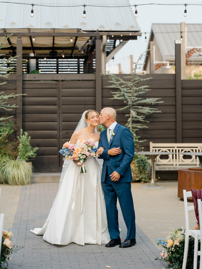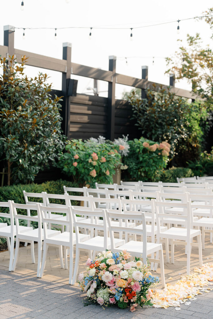 Terrain has three amazing locations for weddings, Gemma and Evan had their wedding at the Devon Yard location. This venue merges indoor and outdoor spaces to create a seamless spot for your whole day. Terrain uses rustic and modern features that pair perfectly together. The outdoor ceremony space is absolute magic. Lined with wisteria trees and offering a secluded and intimate location for ceremony, it feels like being in a fairytale. With so many picture perfect photo locations on the property you really can’t go wrong when you book with Terrain!