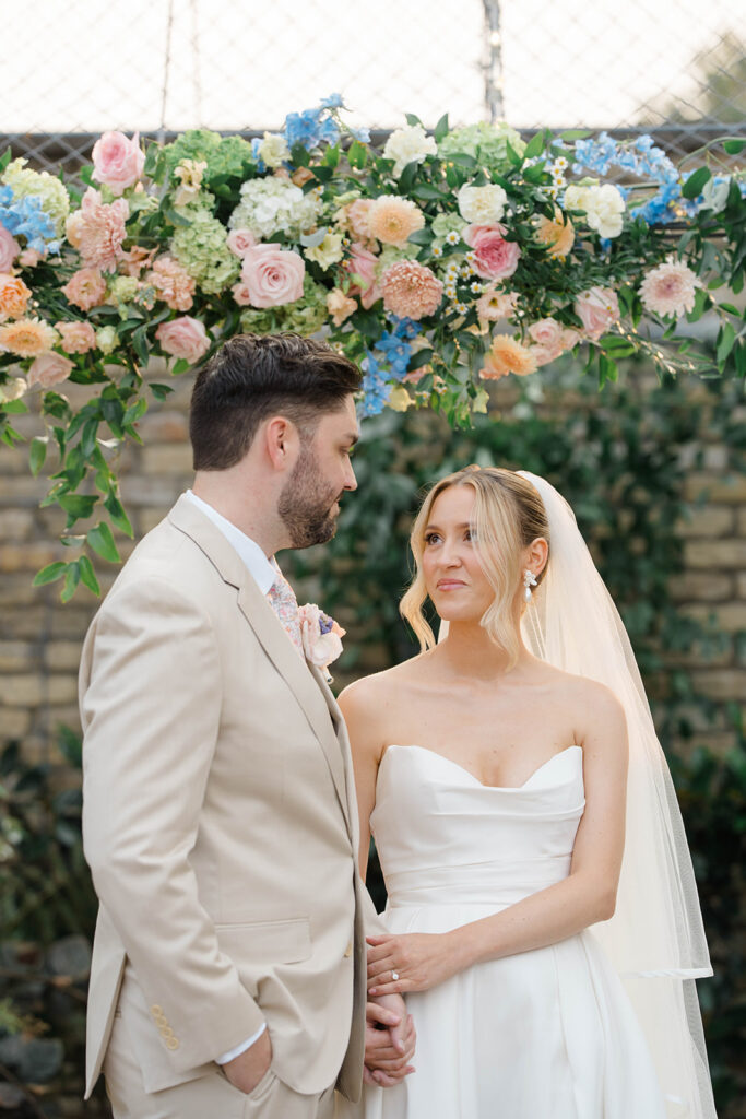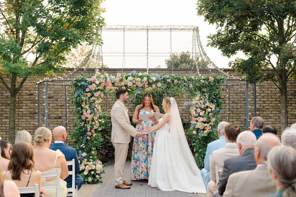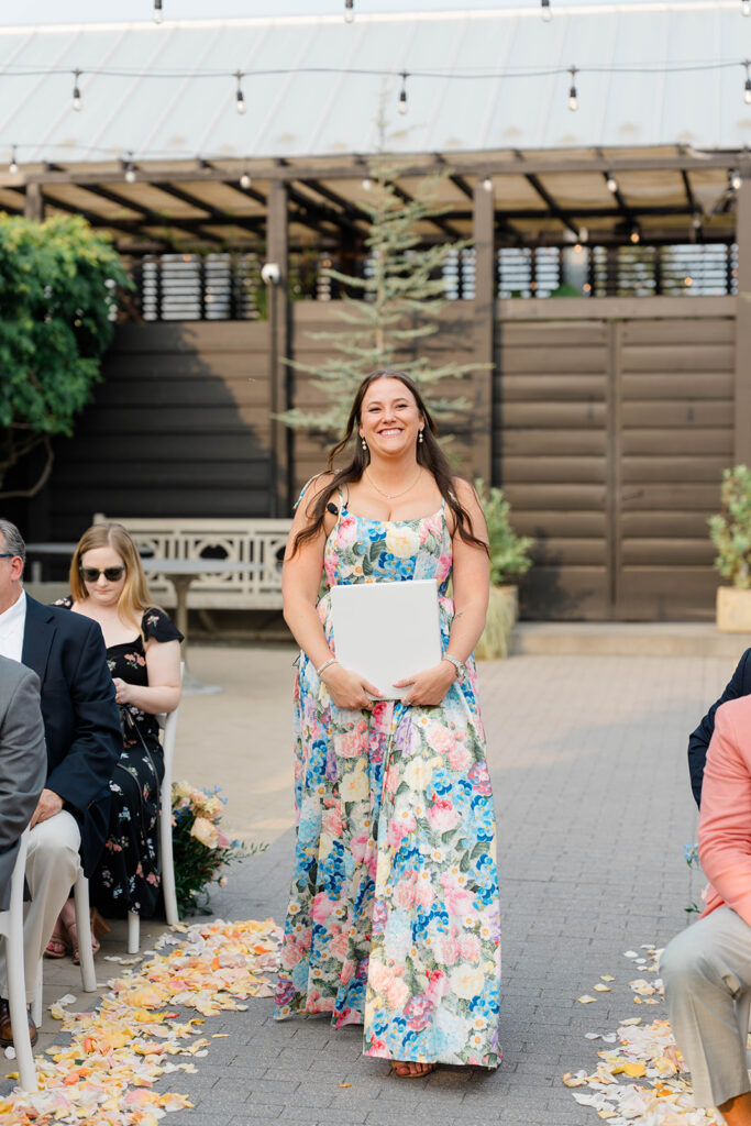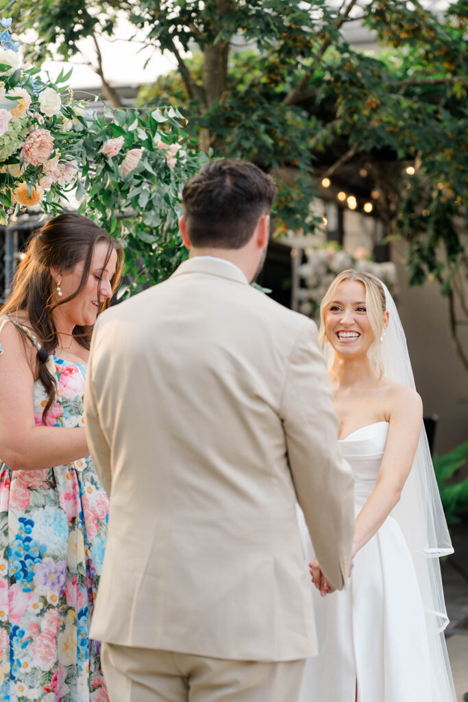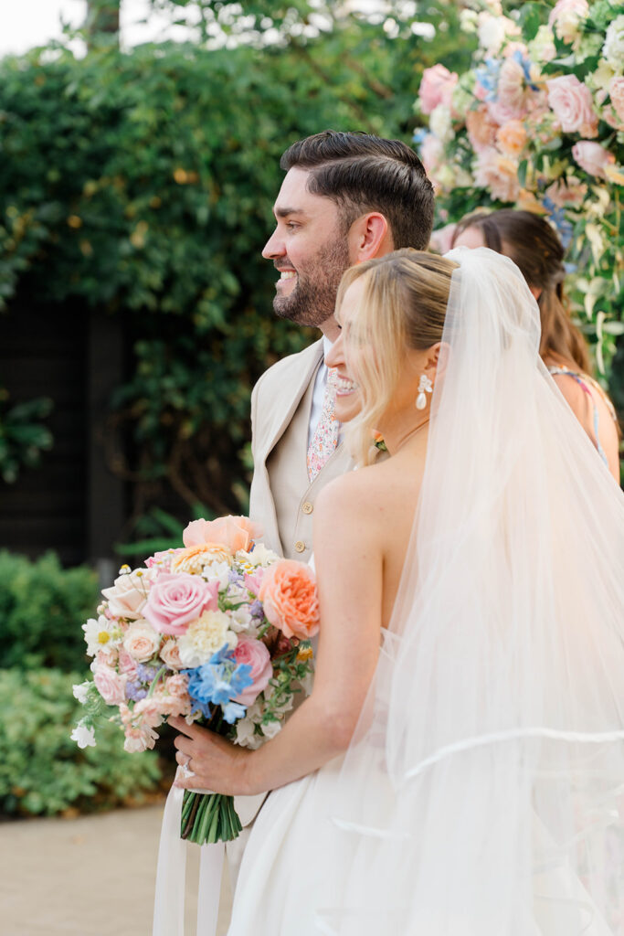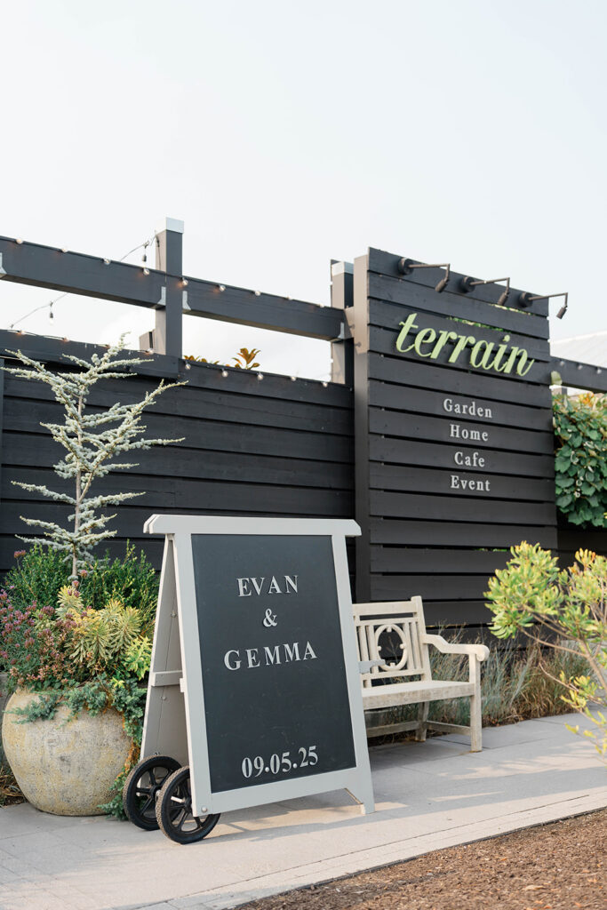 Gemma and Evan’s ceremony was nothing short of magical. Terrain offers the perfect outdoor location for ceremonies. The outdoor location is lined with lush greenery and seasonal florals, because of this the ceremony location feels like a dream. The sun created a soft glow throughout the ceremony, which made for an enchanting atmosphere. It was one of those days where everything just clicked. The perfect lighting, stunning couple, happy faces, beautiful backdrop.