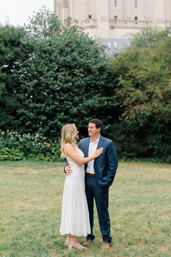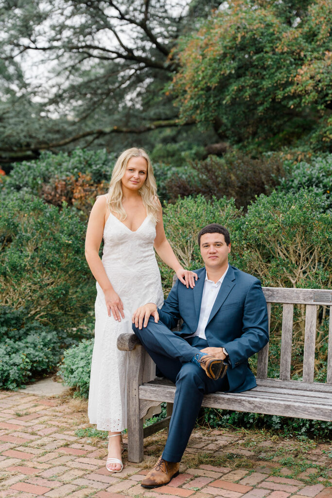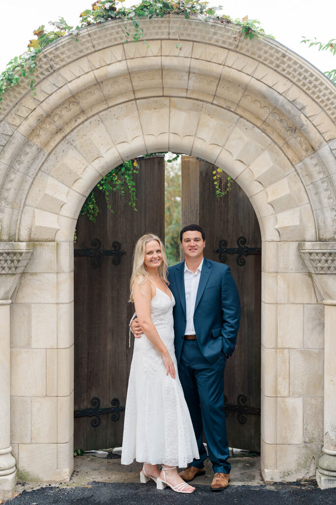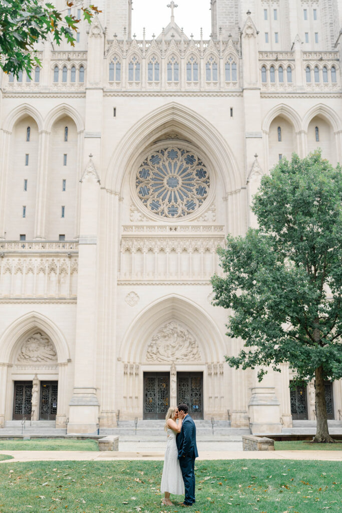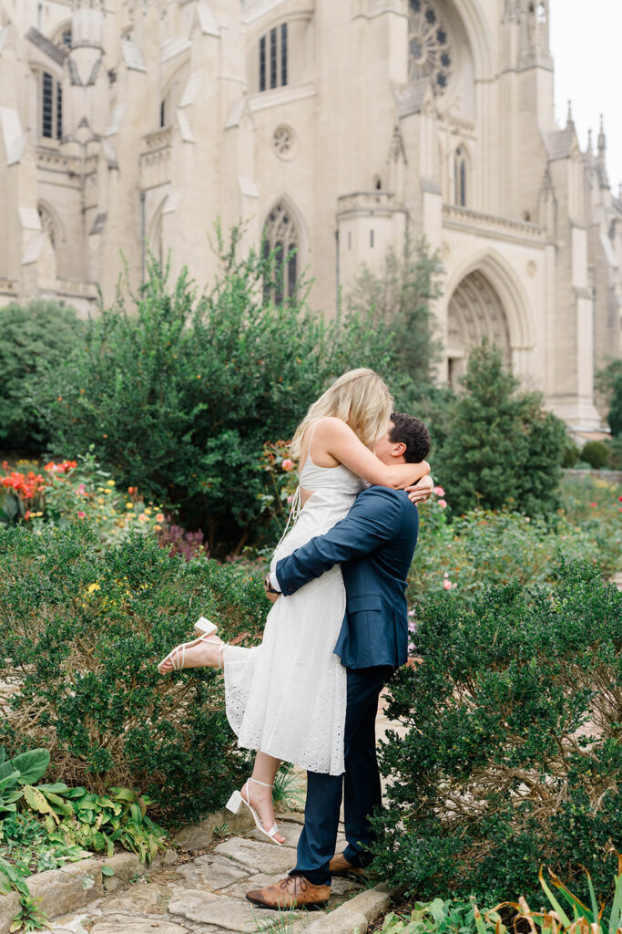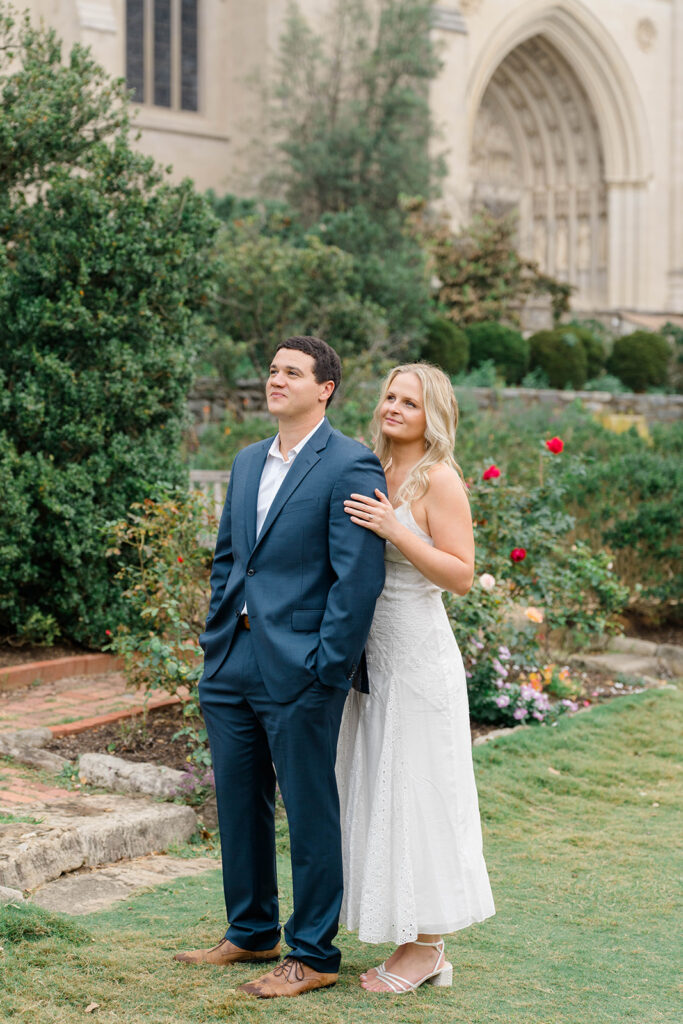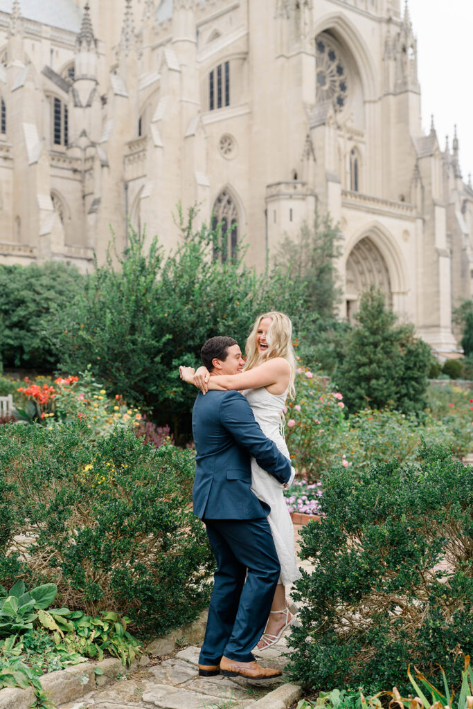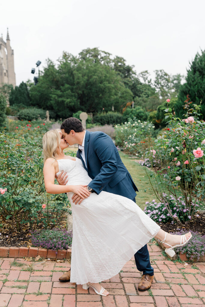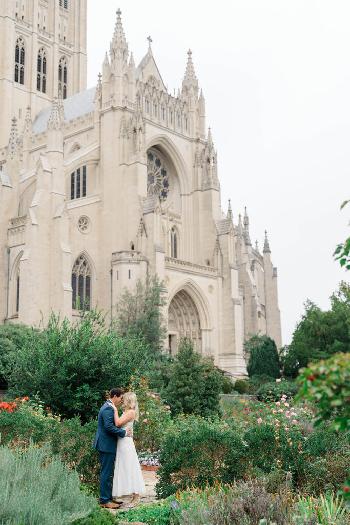 Bishop’s garden is one of those effortlessly romantic locations to take engagement photos. This beautiful garden nestled in DC is the kind of place that feels like it was made for quiet moments. It’s a perfect escape away from the hustle and bustle of the city. Tucked behind the Washington National Cathedral, the garden’s stone pathways, archways, and lush greenery gave us the perfect backdrop to capture this sweet session.