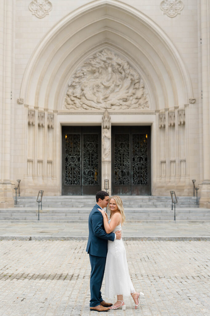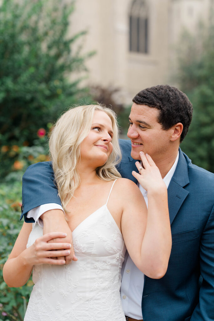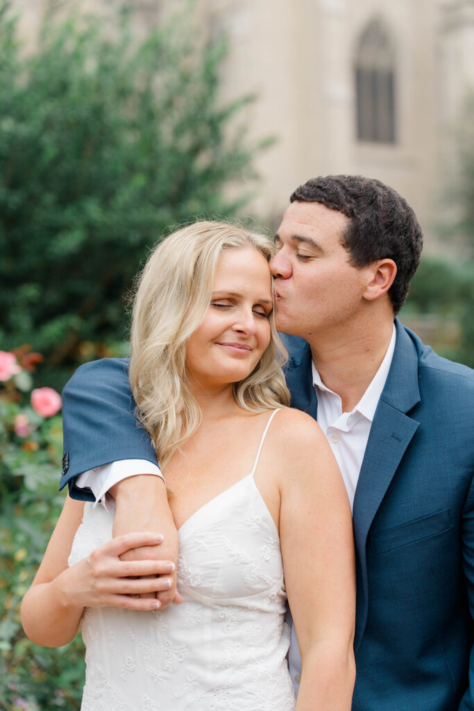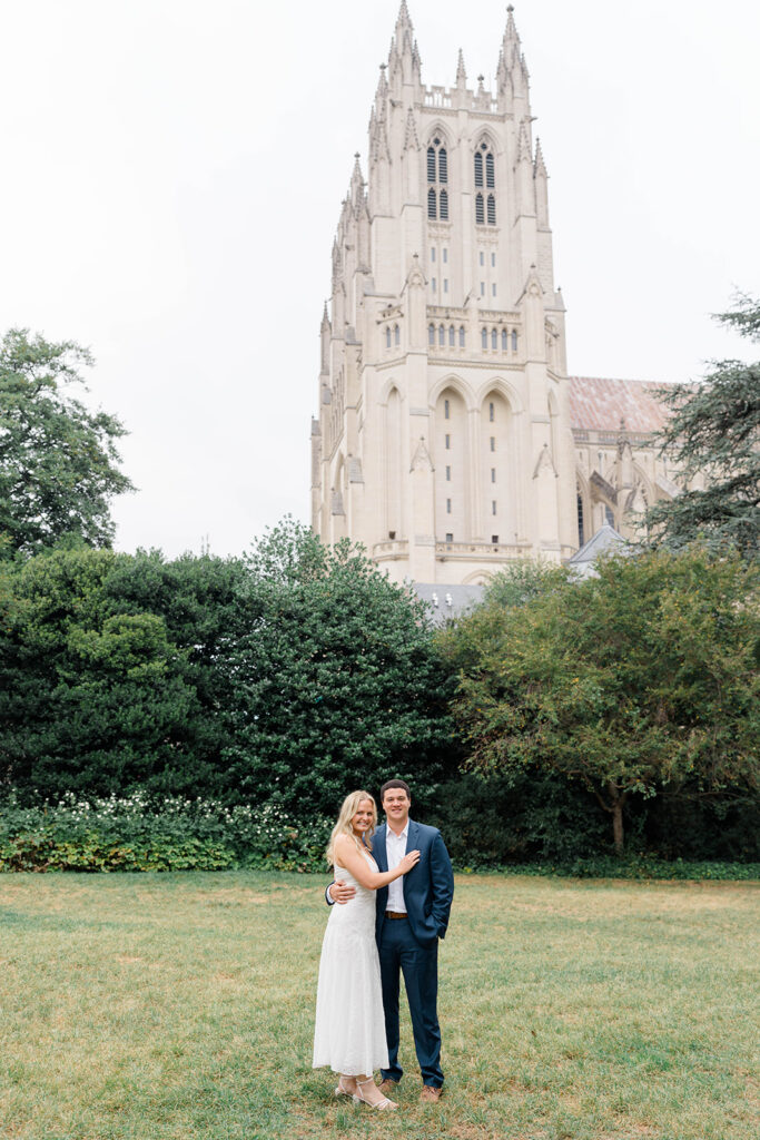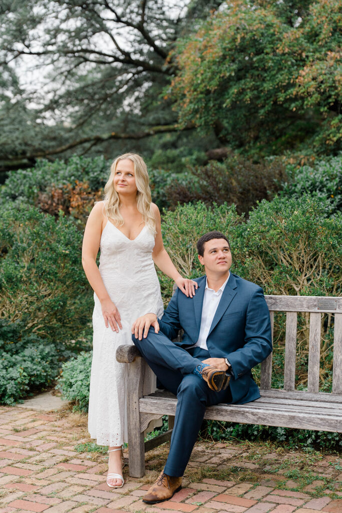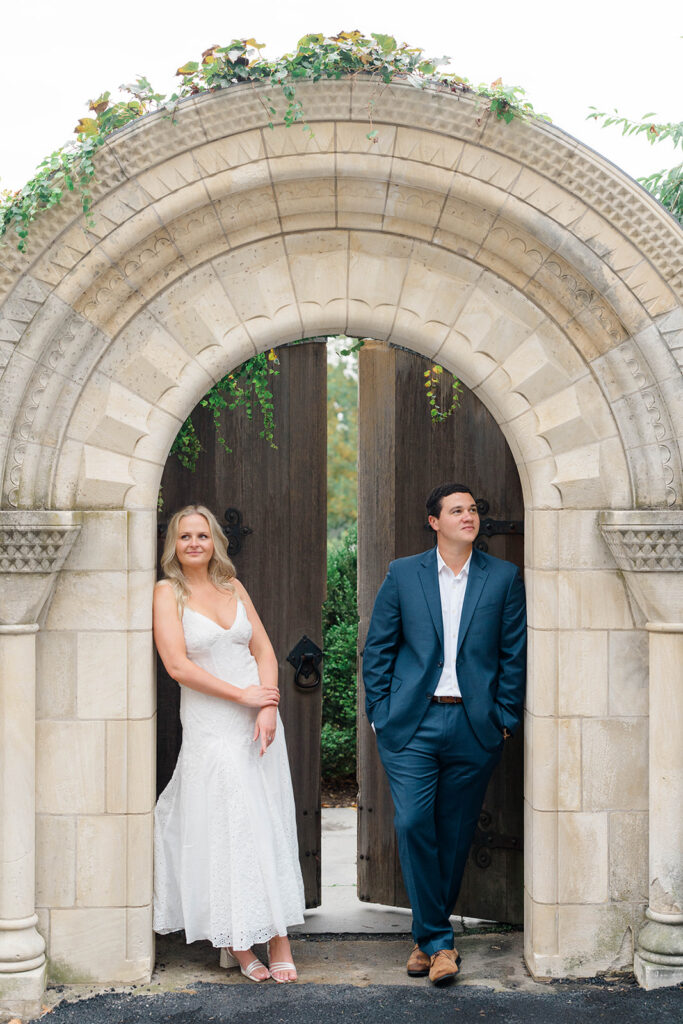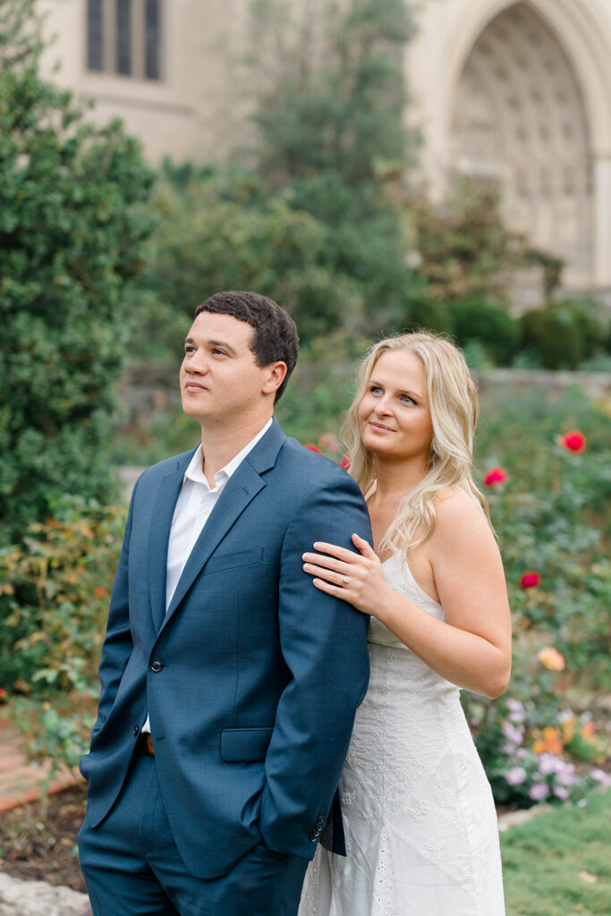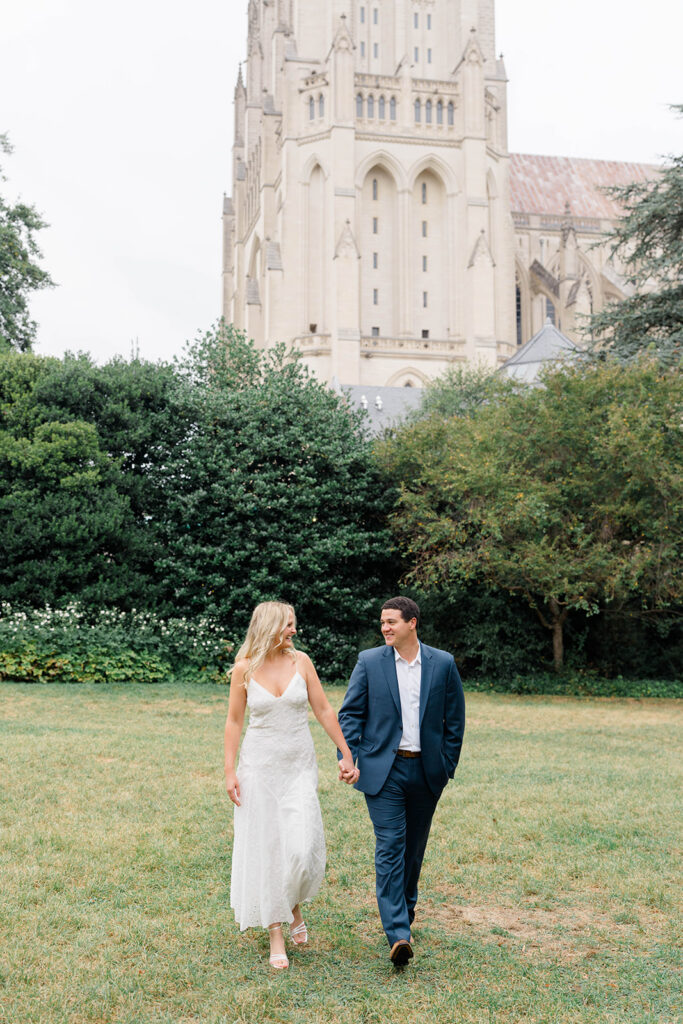 Bishop’s garden is one of those effortlessly romantic locations to take engagement photos. This beautiful garden nestled in DC is the kind of place that feels like it was made for quiet moments. It’s a perfect escape away from the hustle and bustle of the city. Tucked behind the Washington National Cathedral, the garden’s stone pathways, archways, and lush greenery gave us the perfect backdrop to capture this sweet session.