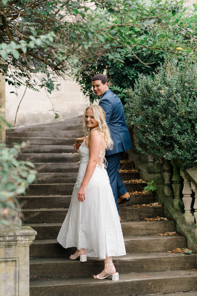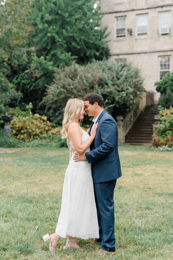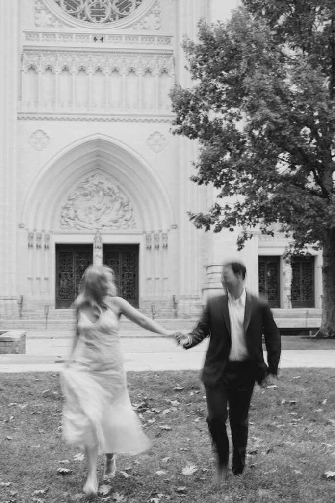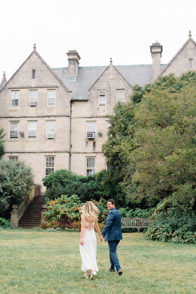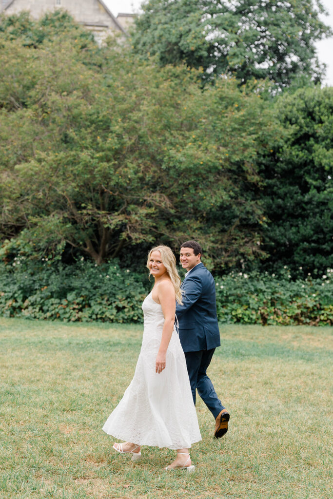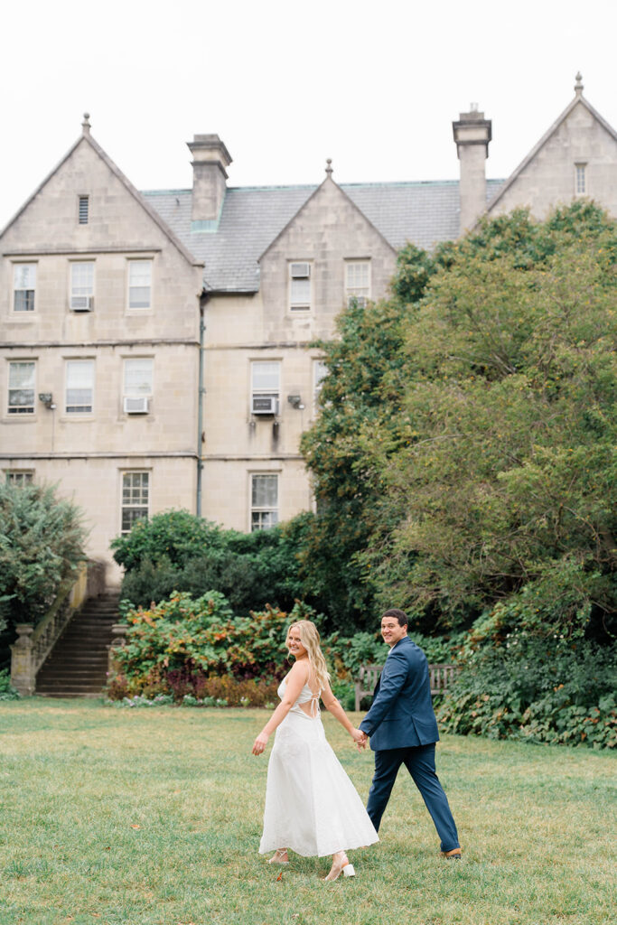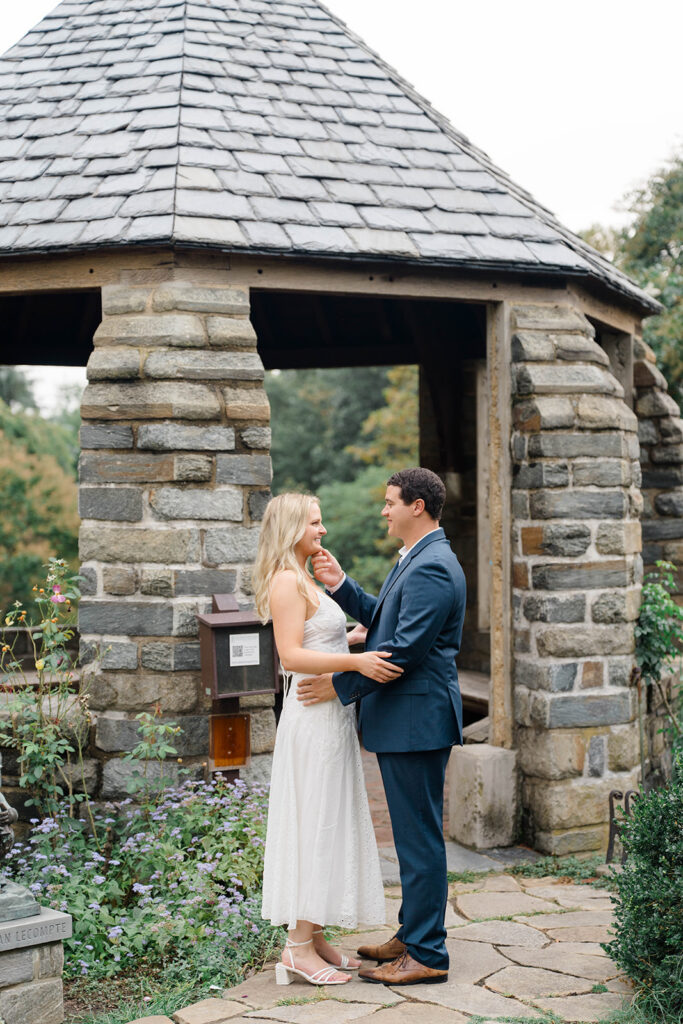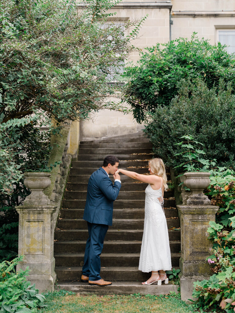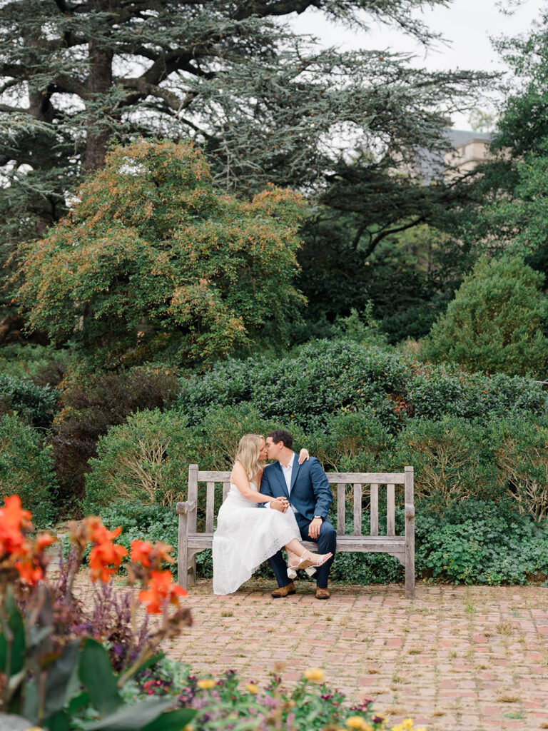 Bishop’s garden is one of those effortlessly romantic locations to take engagement photos. This beautiful garden nestled in DC is the kind of place that feels like it was made for quiet moments. It’s a perfect escape away from the hustle and bustle of the city. Tucked behind the Washington National Cathedral, the garden’s stone pathways, archways, and lush greenery gave us the perfect backdrop to capture this sweet session.