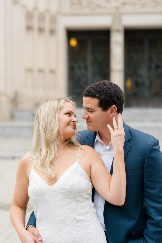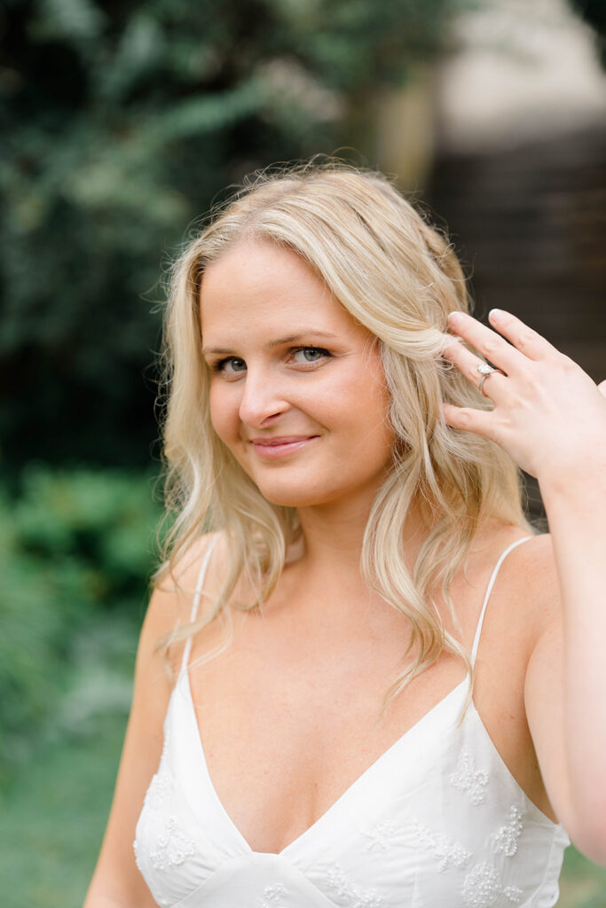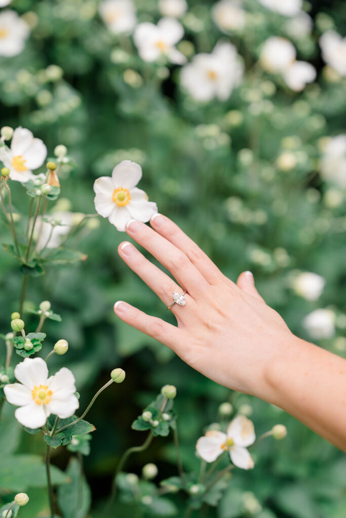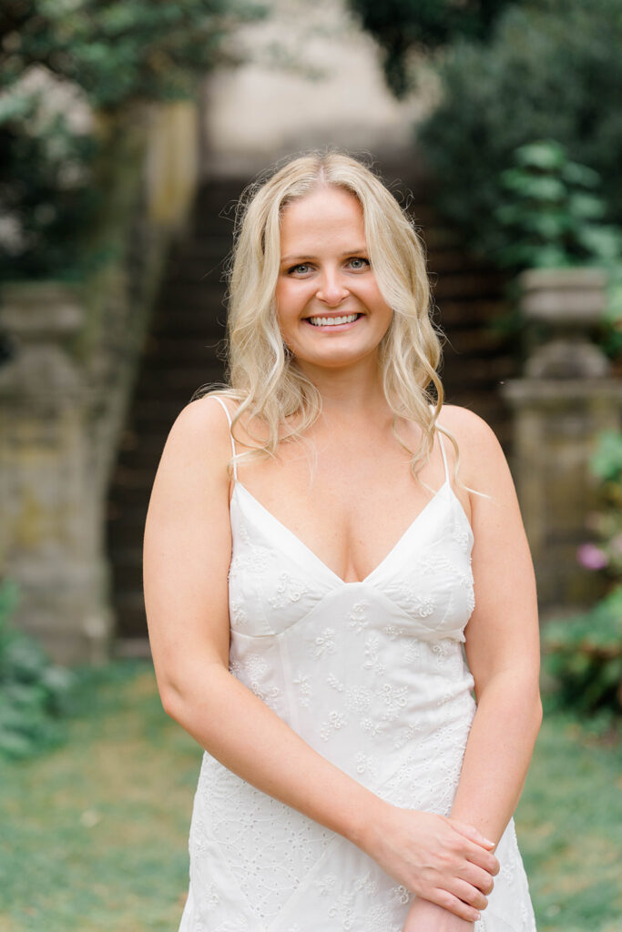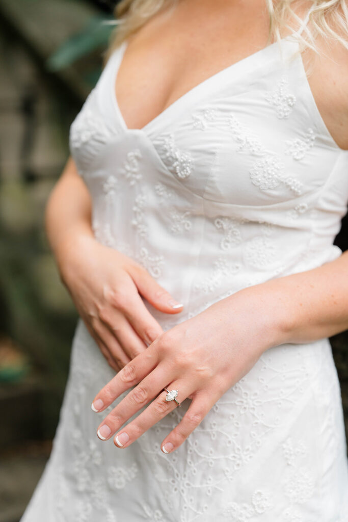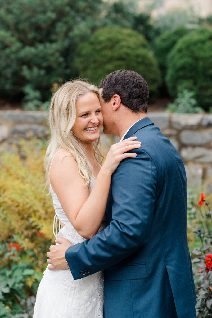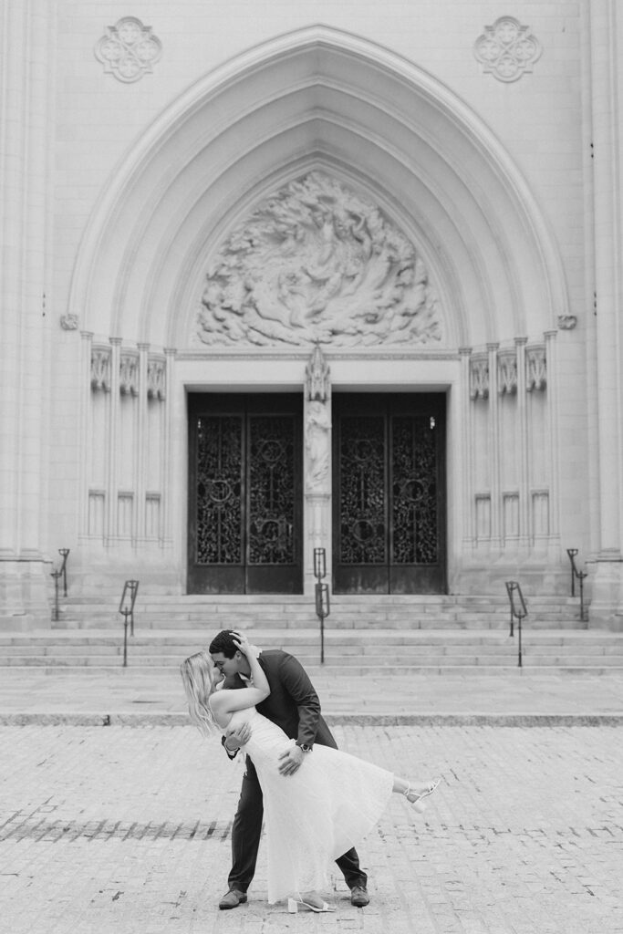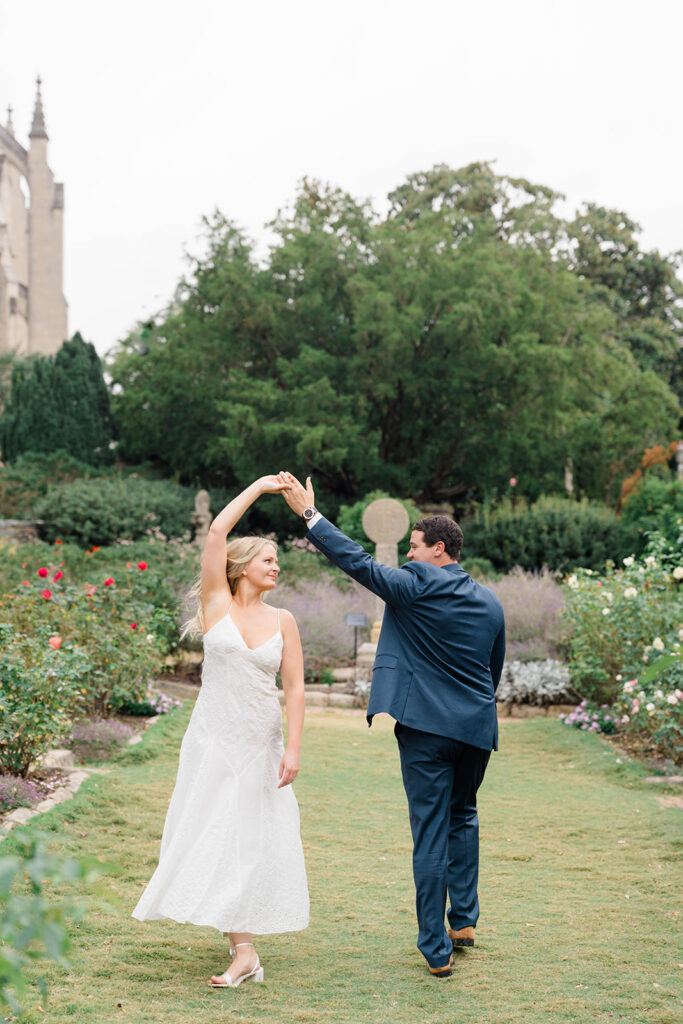 Bishop’s garden is one of those effortlessly romantic locations to take engagement photos. This beautiful garden nestled in DC is the kind of place that feels like it was made for quiet moments. It’s a perfect escape away from the hustle and bustle of the city. Tucked behind the Washington National Cathedral, the garden’s stone pathways, archways, and lush greenery gave us the perfect backdrop to capture this sweet session.
